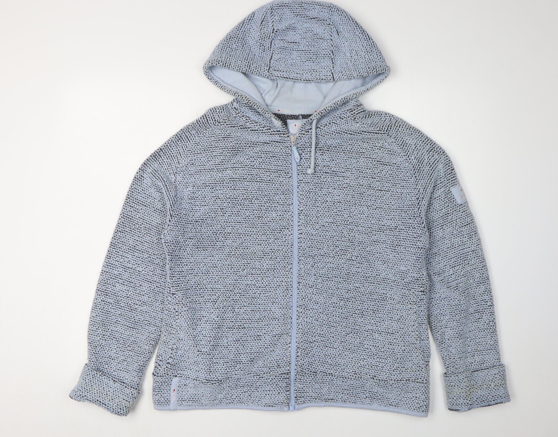 Step into comfort and style with this chunky-knit Weird Fish full zip hoodie. Designed for the cooler months, this blue jumper is perfect for casual outings, boasting a regular fit that ensures ease and flexibility. The cotton and polyester blend offers not just warmth but also breathability, making it an ideal choice for those unpredictable autumn and winter days. Featuring a convenient full zip for easy wear, along with a hood to keep the chill at bay, this piece embodies both practicality and fashion. The long sleeves come with raglan cut, adding a touch of sporty elegance to the overall look. Its machine washable fabric type ensures easy maintenance, making it a desirable addition to your wardrobe. Although it lacks original sales tags, its condition remains excellent with no visible signs of wear or damage. Priced at £25.00, this versatile hoodie is a brilliant pick for those who appreciate quality and style. Add it to your collection today and enjoy its cosy embrace.