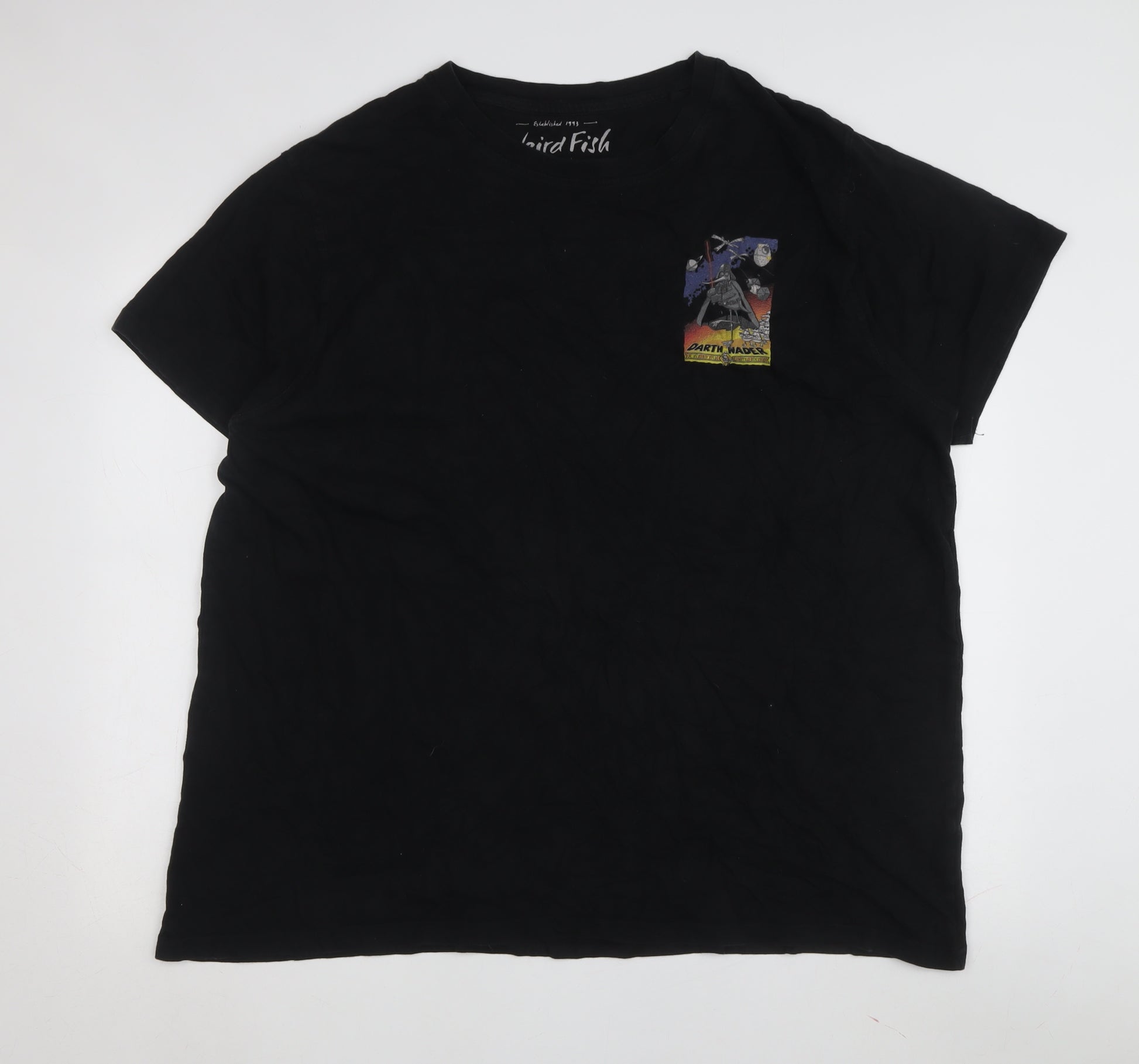 Discover this eye-catching Weird Fish men's T-shirt featuring the iconic Darth Vader from the legendary Star Wars franchise. Crafted from 100% organic cotton, this black crew neck shirt ensures a comfortable fit, perfect for any fan of the epic saga. With a bold graphic print that showcases Darth Vader, this limited edition tee is both a wearable piece of art and a conversation starter. Ideal for year-round wear, whether it's spring, summer, autumn, or winter. Don't miss adding this unique and stylish addition to your wardrobe.