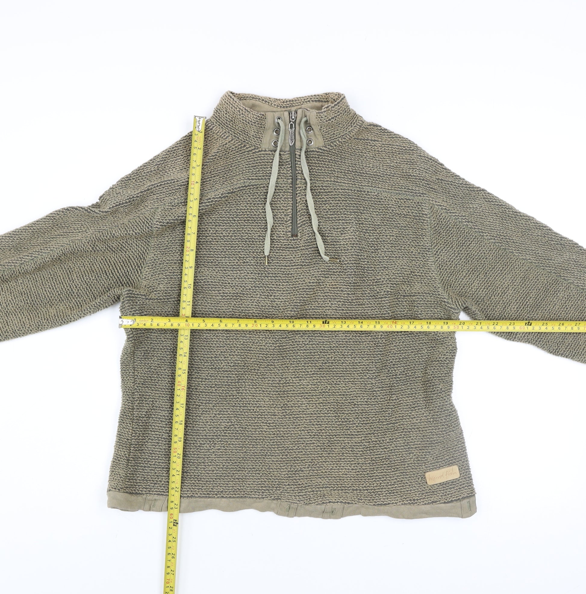 Experience the signature comfort and casual style of this Weird Fish men's beige 1/4 zip sweatshirt, crafted for effortless wear and all-season appeal. Designed from a quality mix of 90% cotton and 10% polyester, this knit pullover offers a soft yet durable finish with a distinctive textured look. The natural cotton base ensures breathability and everyday comfort, while polyester adds resilience, making it ideal for layering on cool autumn or winter days. The warm beige tone pairs perfectly with jeans, chinos, or walking trousers, making it both a reliable outdoor companion and a stylish casual staple. The high neck design, complete with a functional quarter-zip and drawstring detail, provides both versatility and comfort, while the logo patch accent on the hem gives it the iconic Weird Fish identity. This long sleeve sweatshirt features a relaxed, regular fit that ensures ease of movement and a flattering silhouette for men of all builds. With its durable knit fabric and understated style, it’s suitable for casual weekends, outdoor walks, or evenings by the pub fire. This piece has been pre-loved and remains in excellent condition, showing only minimal light wear with no damage—offering great value compared to brand new versions retailing much higher. Machine washable for convenient care, it’s a practical choice for everyday use or travel. Whether you’re a fan of Weird Fish’s classic laid-back style or simply looking for a quality men’s sweatshirt that blends comfort and style, this garment will make a versatile and timeless addition to your wardrobe. Snap it up before someone else does and enjoy ultimate comfort and rugged charm with this Weird Fish beige knit sweatshirt. Ideal for gifting or treating yourself to an upgrade in casualwear comfort and style.