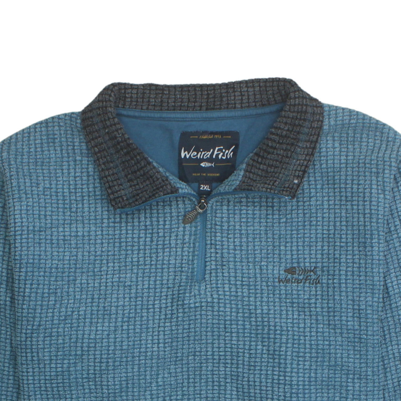 Step up your casual comfort with this Weird Fish men's blue 1/4 zip collared sweatshirt, perfect for those cool-weather days. Designed in a relaxed, regular fit, this sweatshirt combines a modern textured knit pattern with a durable soft-touch fabric that offers both warmth and breathability. The deep blue tone with contrast collar detail adds a touch of character, ideal for layering over a t-shirt or under a jacket. The 1/4 zip design provides ease of wear and quick ventilation, while the embroidered Weird Fish logo on the chest subtly showcases quality craftsmanship. Made from a durable blend of 88% polyester and 12% viscose, it combines comfort, softness, and resilience, ensuring long-lasting wear. This mid-weight style makes it perfect for autumn through spring, whether you're heading outdoors or relaxing at home. Designed for men who value practical style, it includes long sleeves and a collared neckline for a versatile smart-casual look. The textured knit fabric adds visual interest and a cosy handfeel, making it a favourite choice for weekend wear. Pair it with jeans or cargo trousers for an effortless laid-back outfit. In excellent pre-owned condition with light wear and no damage, this quality Weird Fish sweatshirt still offers plenty of life and style. Ideal for walking, hiking, or casual everyday wear, it captures the classic outdoor spirit Weird Fish is known for — comfort, reliability, and easy-going style. A wardrobe essential for men seeking warmth and texture in a timeless design, this Weird Fish sweatshirt will quickly become a go-to favourite for versatile, off-duty dressing.