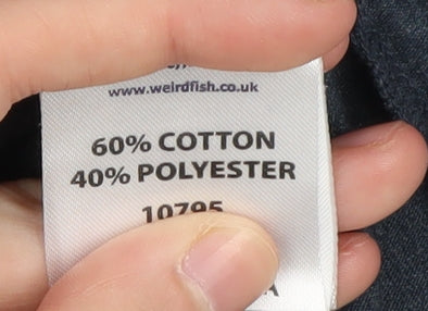 Discover laid-back style with the Weird Fish Men's T-Shirt. Crafted in a versatile blue hue, this regular fit tee combines comfort with a touch of casual chic. Constructed from a soft blend of 60% cotton and 40% polyester, it offers ultimate breathability and durability, ideal for every season. The solid pattern and understated Weird Fish logo add subtle character, while the crew neckline and short sleeves deliver classic appeal. Perfect for leisurely days or casual outings, this t-shirt effortlessly pairs with jeans or shorts for an easy-going outfit. Machine washable, it's designed for everyday wear, with slight wear but in excellent condition. Ideal for those who value quality and simplicity in their wardrobe. Grab this must-have piece and elevate your casual collection today.