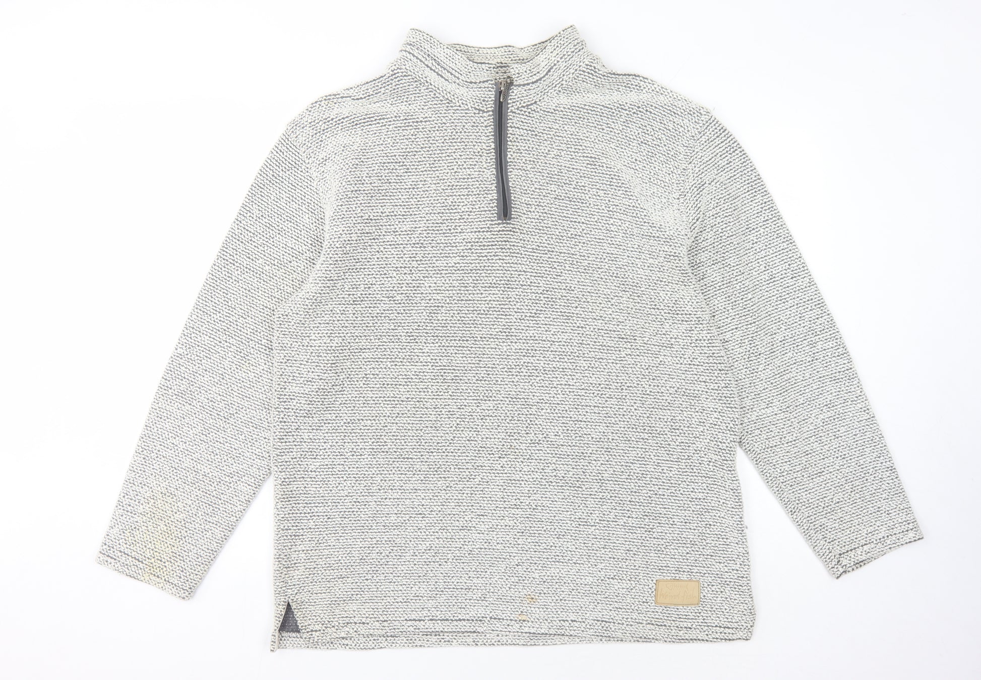 Elevate your casual wardrobe with this classic Weird Fish men's sweatshirt. Designed in a timeless grey, this long sleeve sweatshirt offers a relaxed fit with a practical 1/4 zip closure, perfect for layering in autumn and spring. Constructed from a quality knit fabric blend of 90% Cotton and 10% Polyester, it promises comfort and durability, while the high neckline adds an extra layer of warmth. Ideal for both laid-back weekends and outdoor activities, whether you're relaxing at home or enjoying the great outdoors. Its versatile design makes it a wardrobe staple, effortlessly pairing with jeans or chinos for a cool, casual look. A faint stain on the sleeve affirms its gently worn condition, yet it remains a stylish and functional piece for everyday wear. Offers lightweight comfort suitable for all-day wear, boasting a neat finish to complement any outfit.