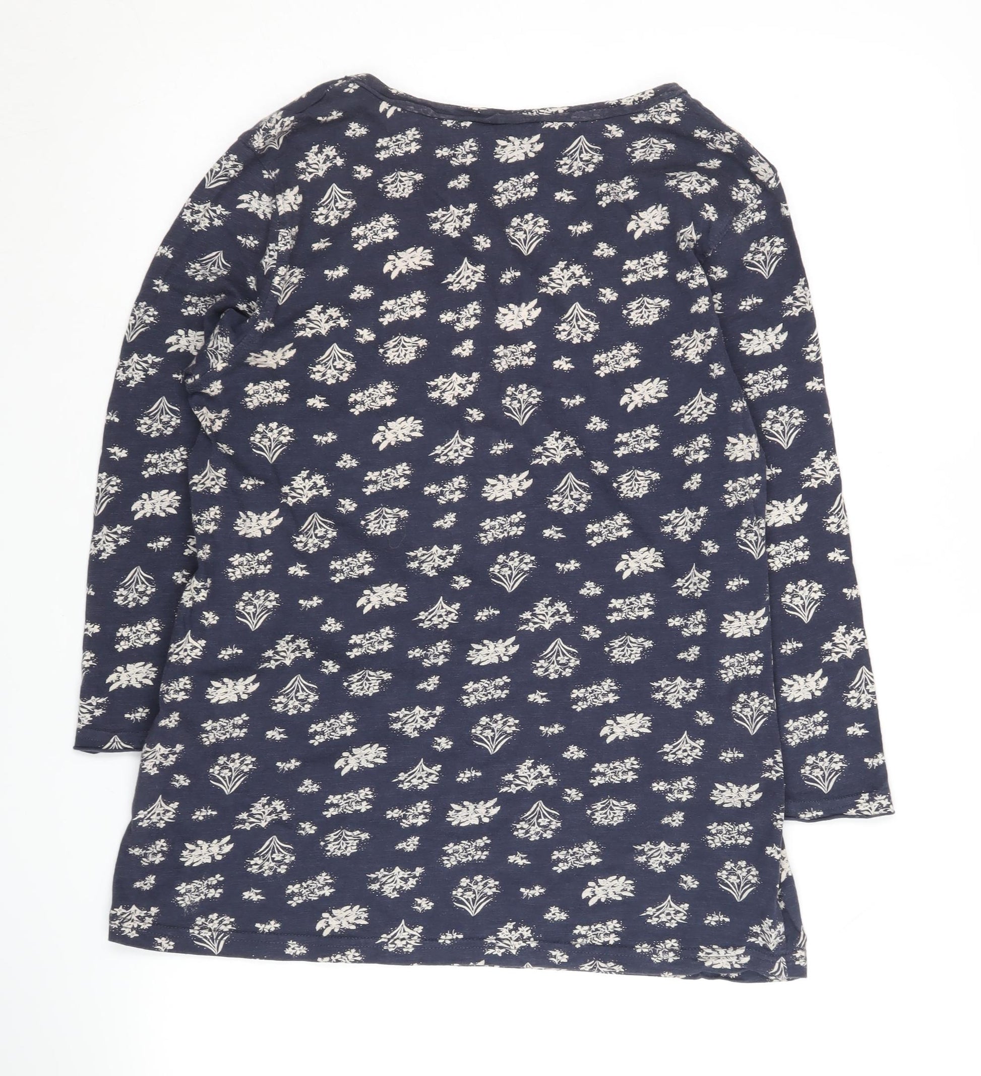 Step into casual chic with the Weird Fish Women's Blue Floral Long Sleeve Top, perfect for adding a touch of elegance to your everyday wardrobe. Crafted from 100% cotton, this top ensures comfort and breathability all day long. Its beautiful blue hue is adorned with a delicate floral pattern, giving it a touch of feminine grace that can effortlessly enhance any outfit. The soft scoop neckline beautifully frames your collarbones, offering both style and ease. Designed for the modern woman, this top features long sleeves that provide warmth and coverage, making it an ideal choice for cooler days. Despite visible wear on the fabric, its quality craftsmanship ensures longevity and style. Whether you're pairing it with jeans for a relaxed day out or layering it under a jacket for a more polished look, this top promises versatility and charm. Machine washable for easy care, it integrates seamlessly into any wardrobe. Available in a UK size 10, it offers a regular fit perfect for various body types. Embrace a blend of comfort and style with this lovely piece, ideal for casual occasions when you want to look your best without sacrificing comfort.