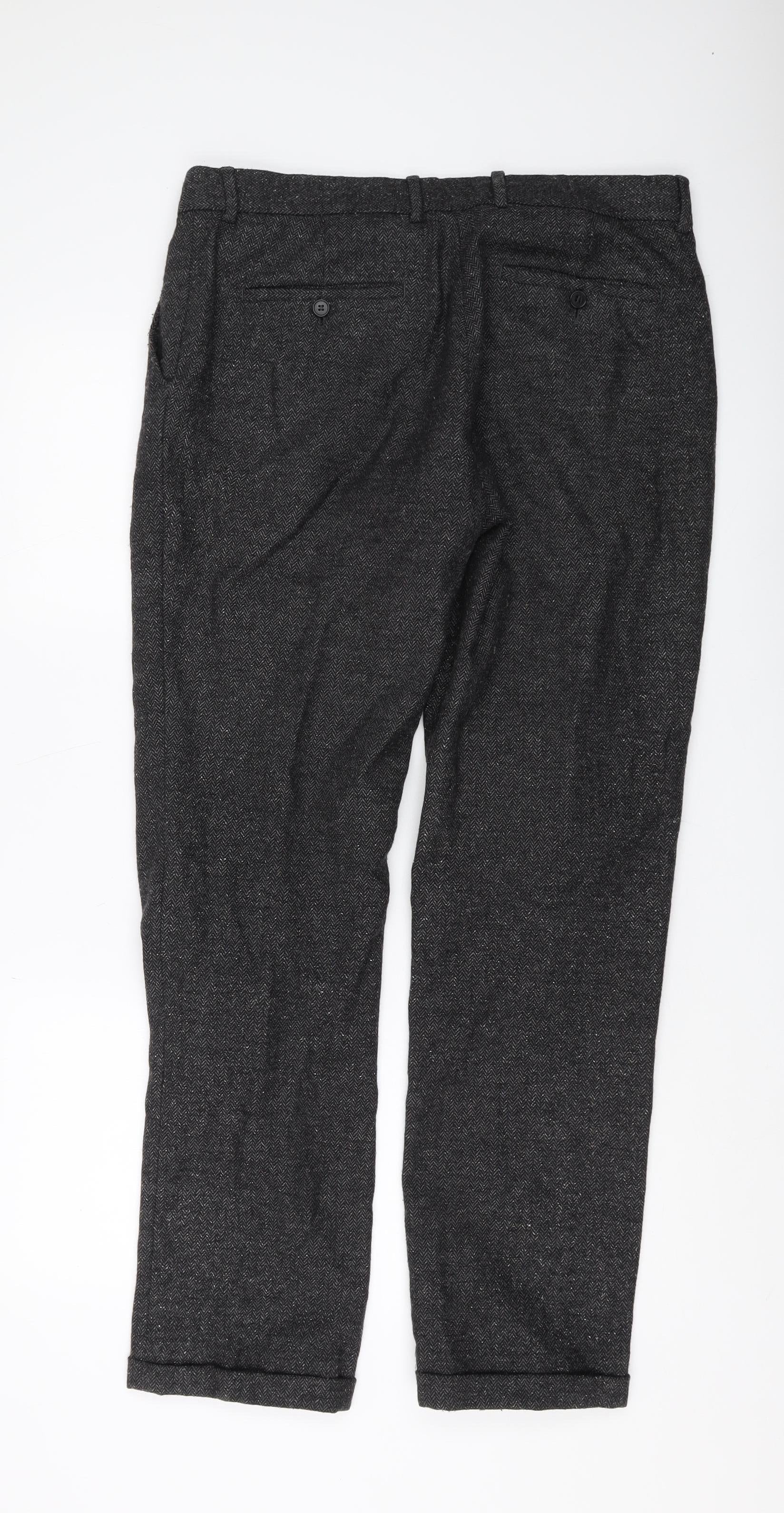 Grey Men's Trousers Size 34 Wool Blend Herringbone