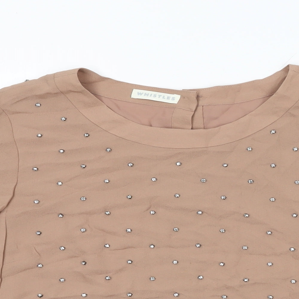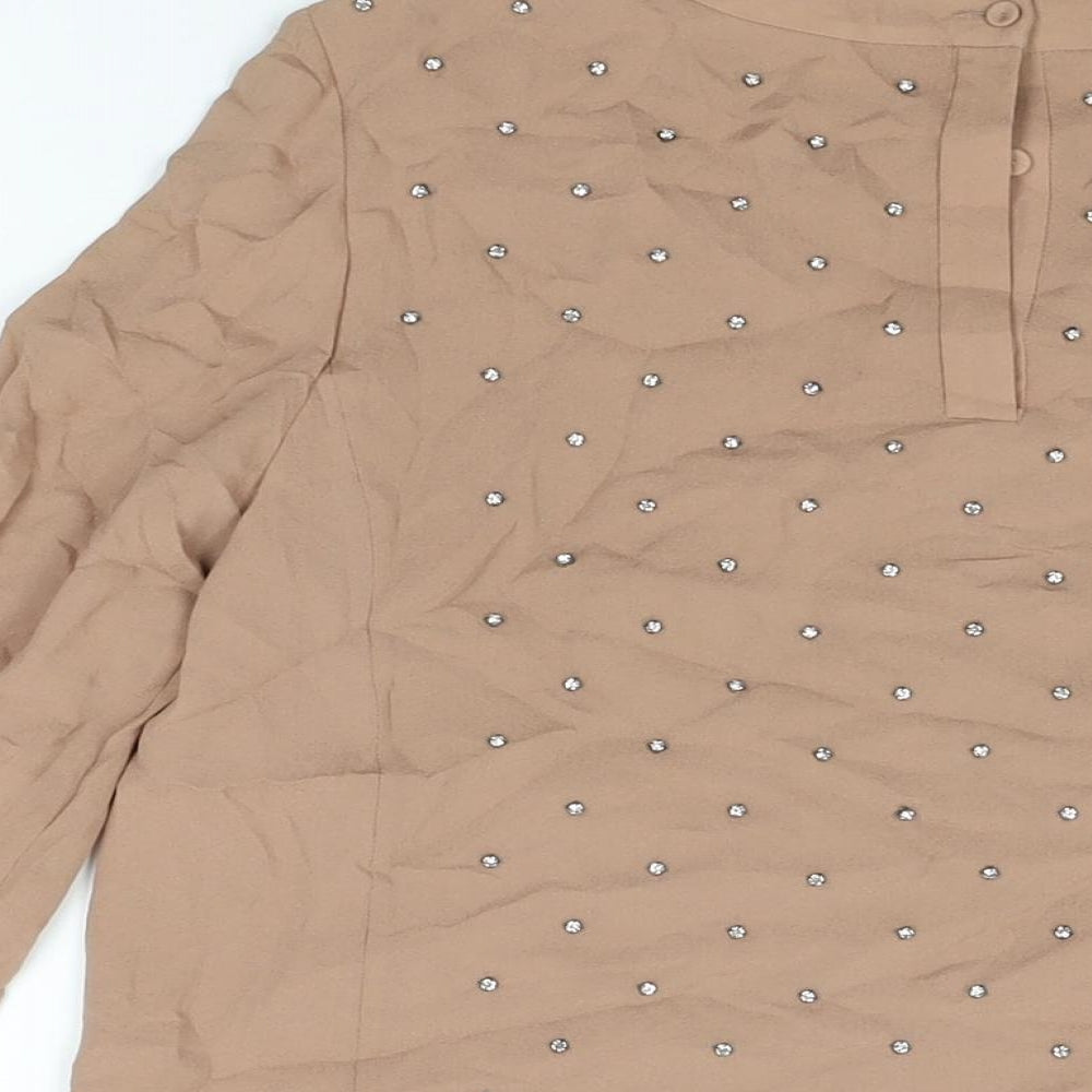 Womens Beige Silk Basic Blouse Size 12 Round Neck