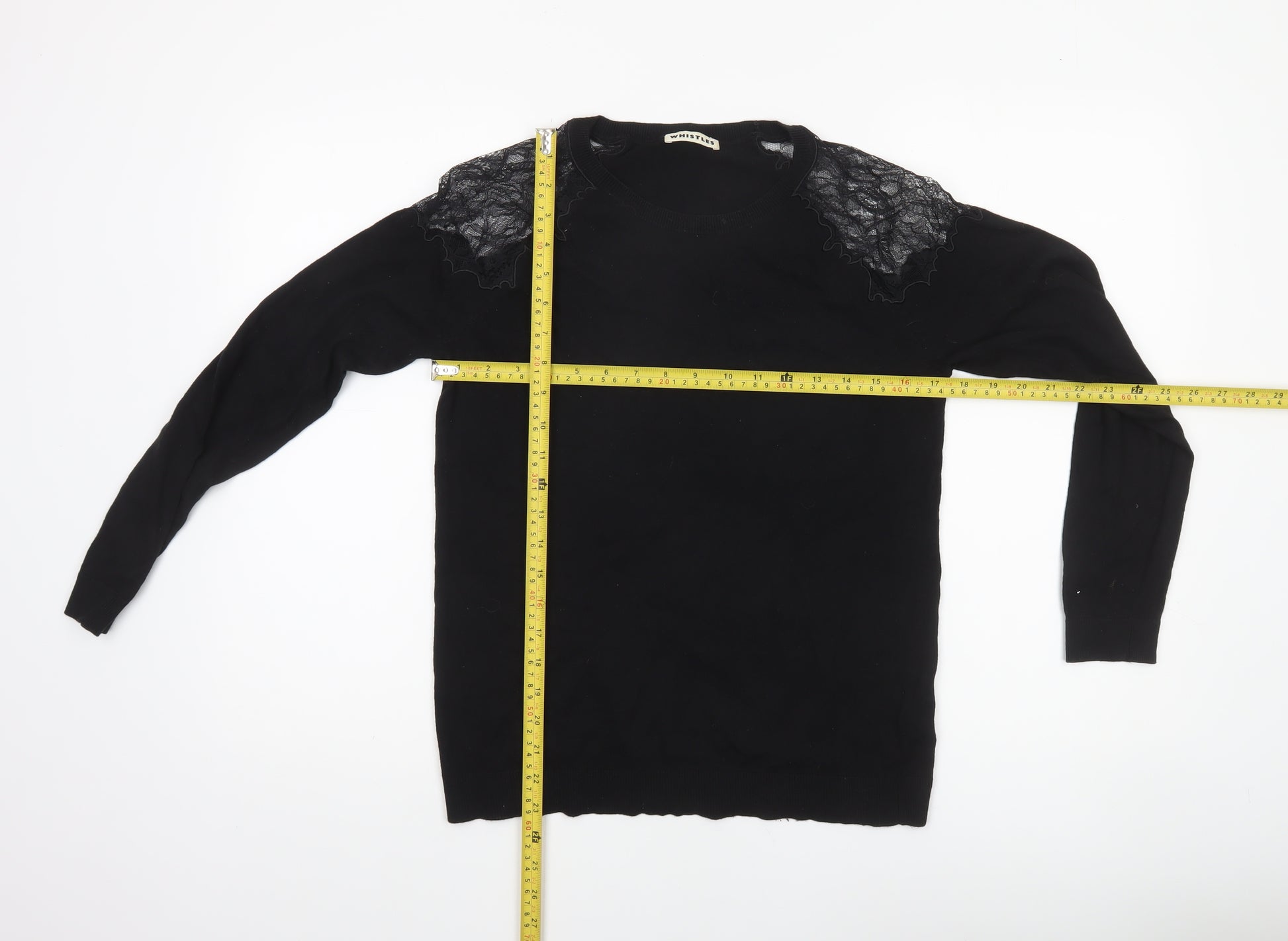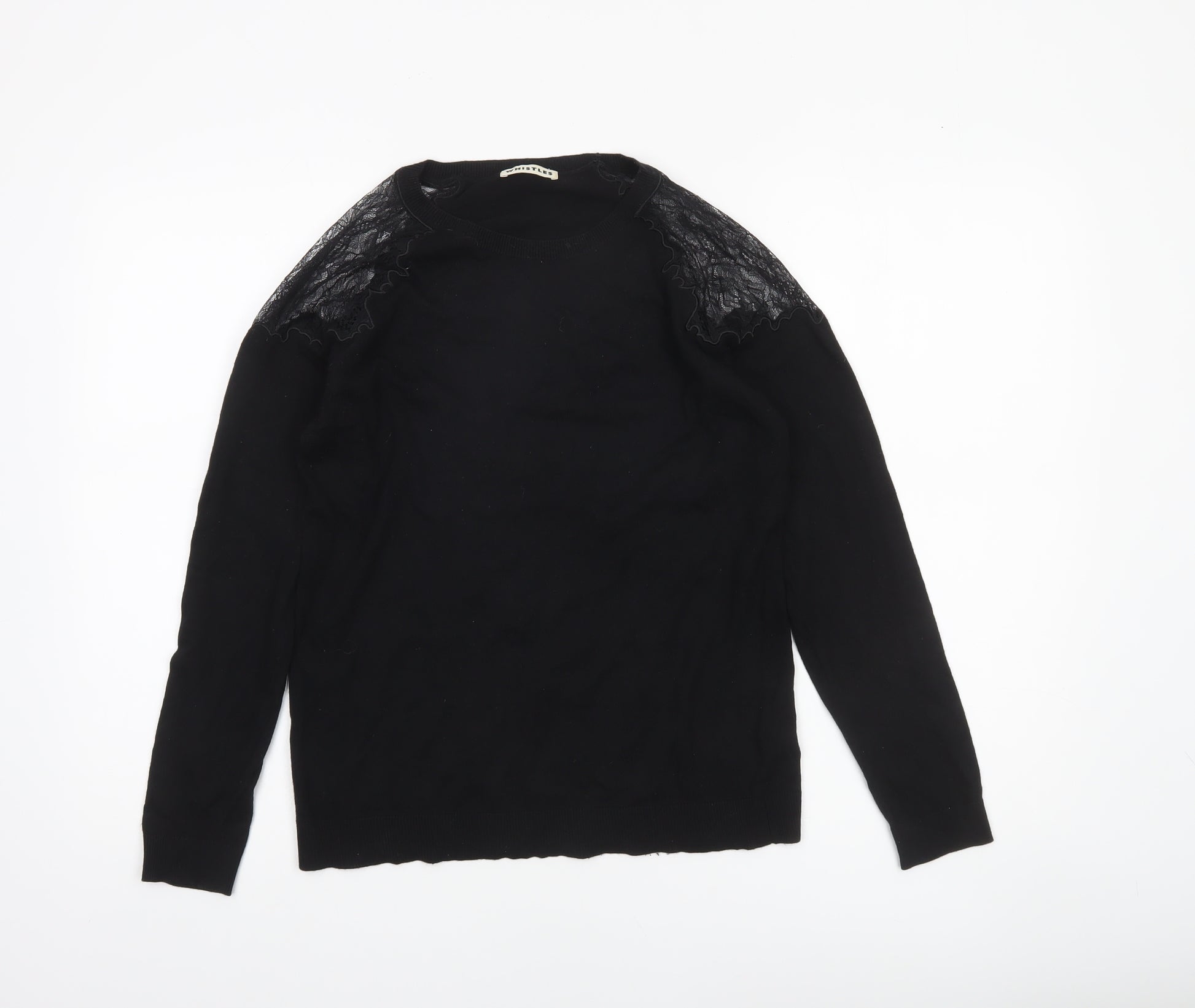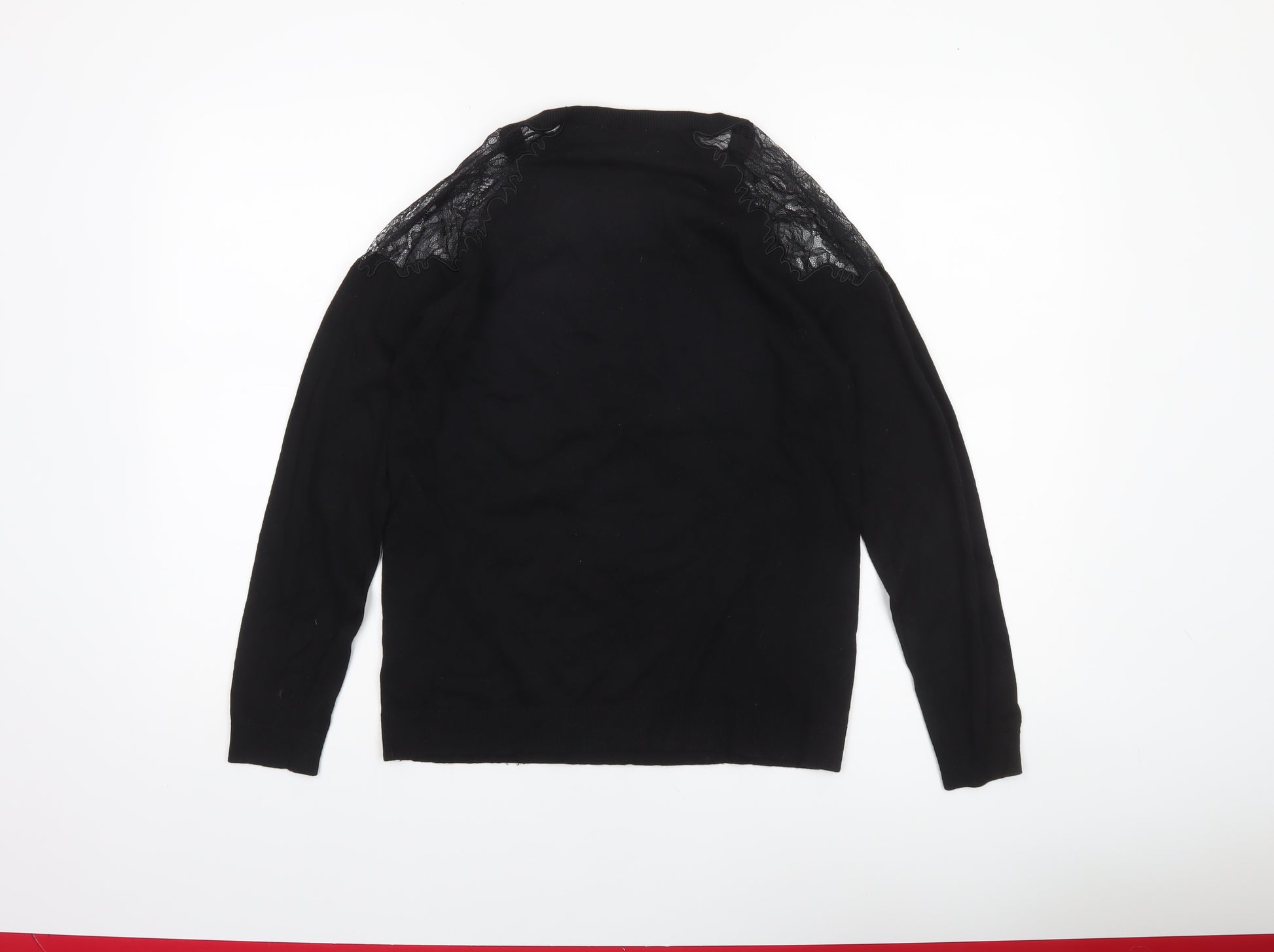 Womens Black Lace Shoulder Crew Neck Jumper Size 10