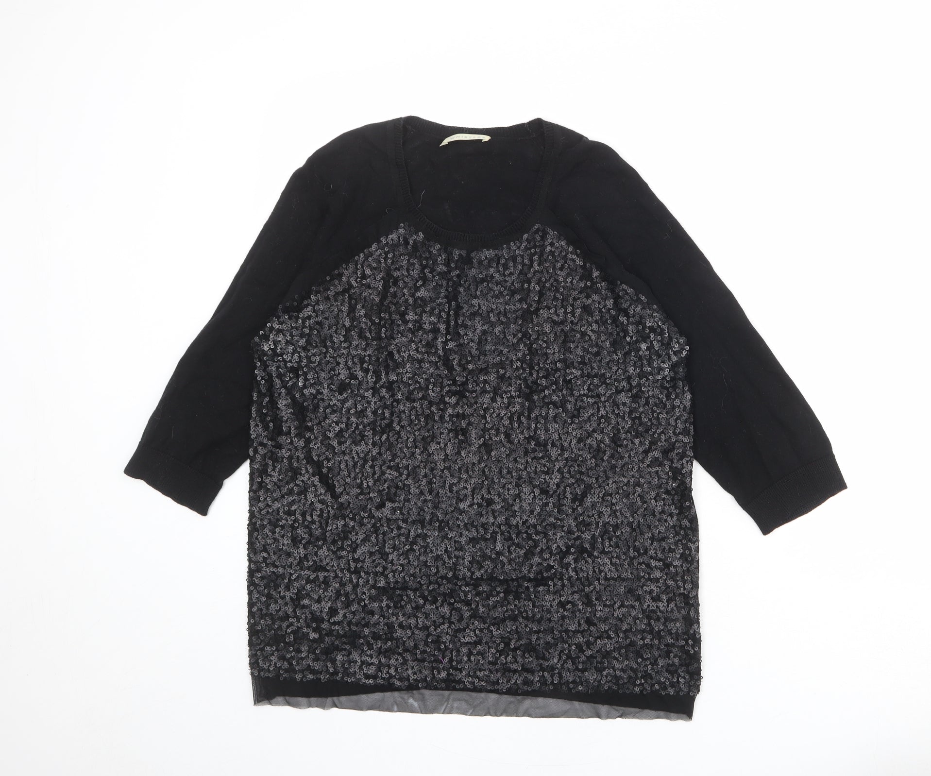 Wild Flower Womens Black Sequin Sleeve Pullover Jumper Size S