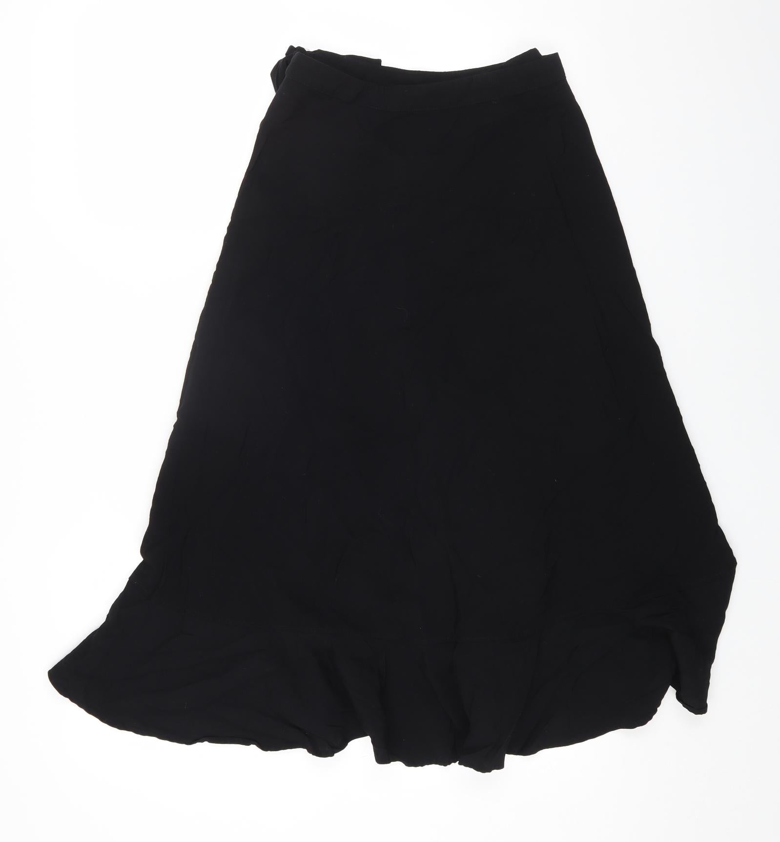 Womens Black Viscose Wrap Skirt Size 10 Button