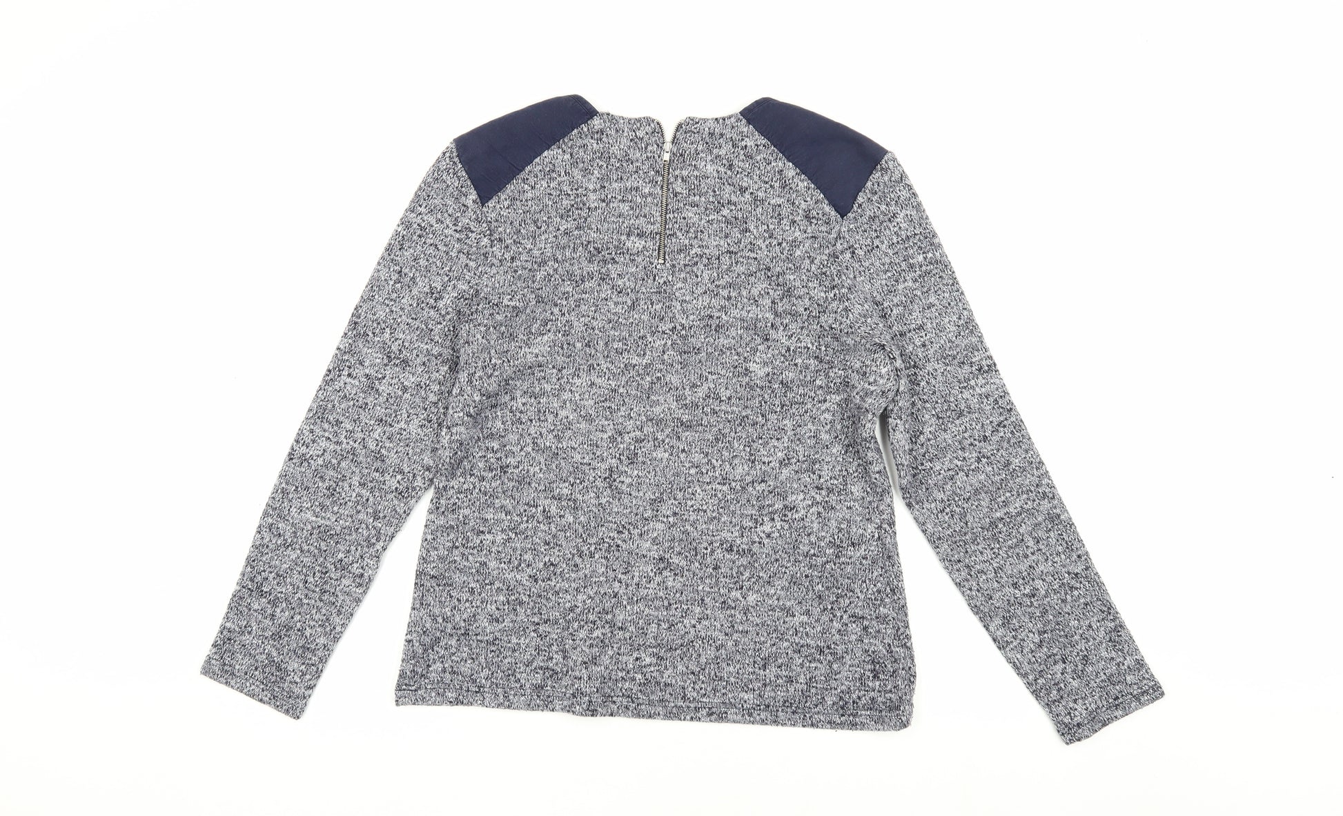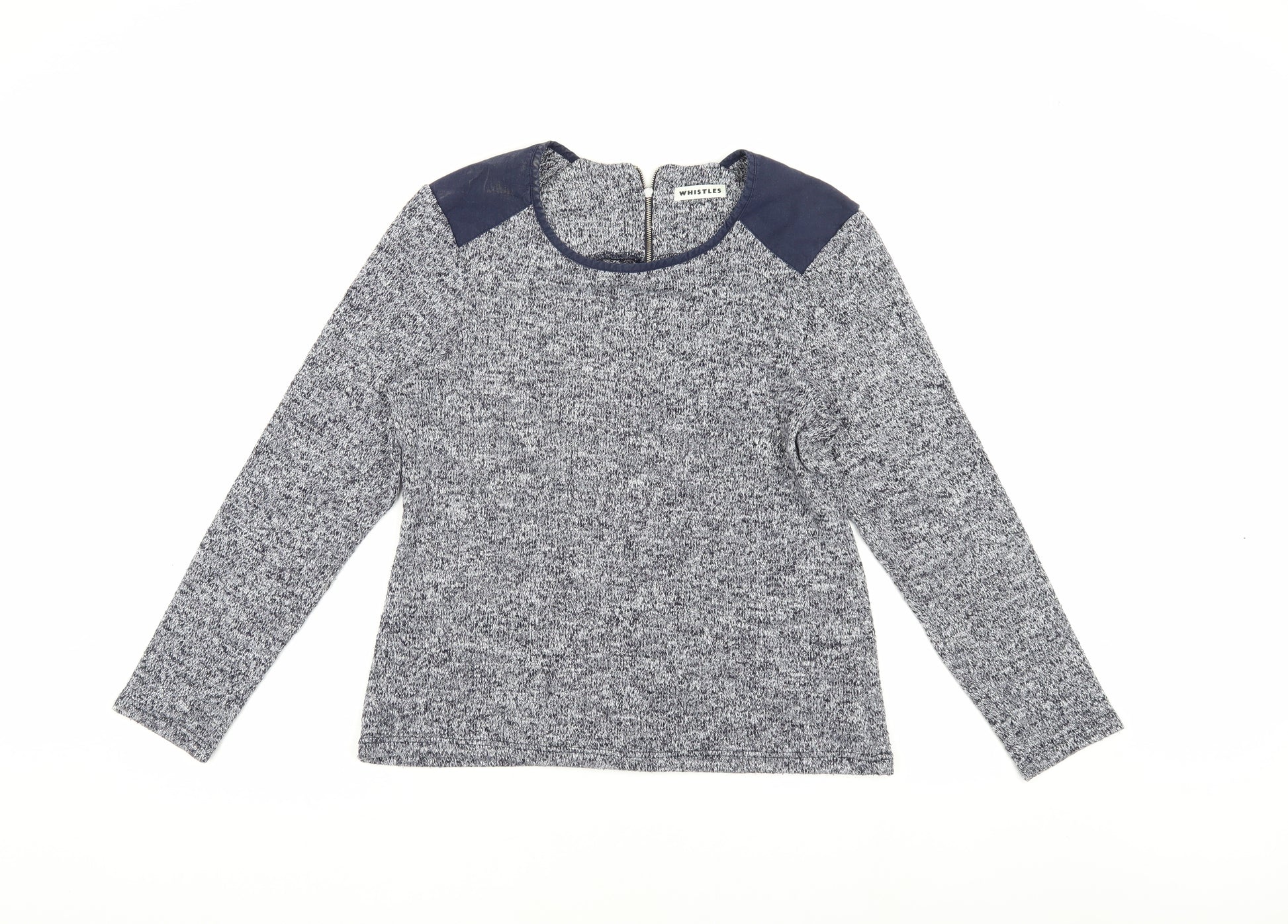 Discover timeless style with this elegant blue knit blouse from Whistles. Perfect for any casual occasion, this women's blouse features a comfortable regular fit and a classic round neckline. The long sleeves make it an excellent choice for both autumn and winter, providing warmth and style. Its zip accents add a modern touch to the overall design. Made from a breathable blend of cotton and polyamide, this blouse is machine washable for easy care. Despite being lightly worn, it remains in excellent condition, ready to be a versatile addition to your wardrobe. Embrace a sophisticated look without compromising on comfort with this Whistles creation.