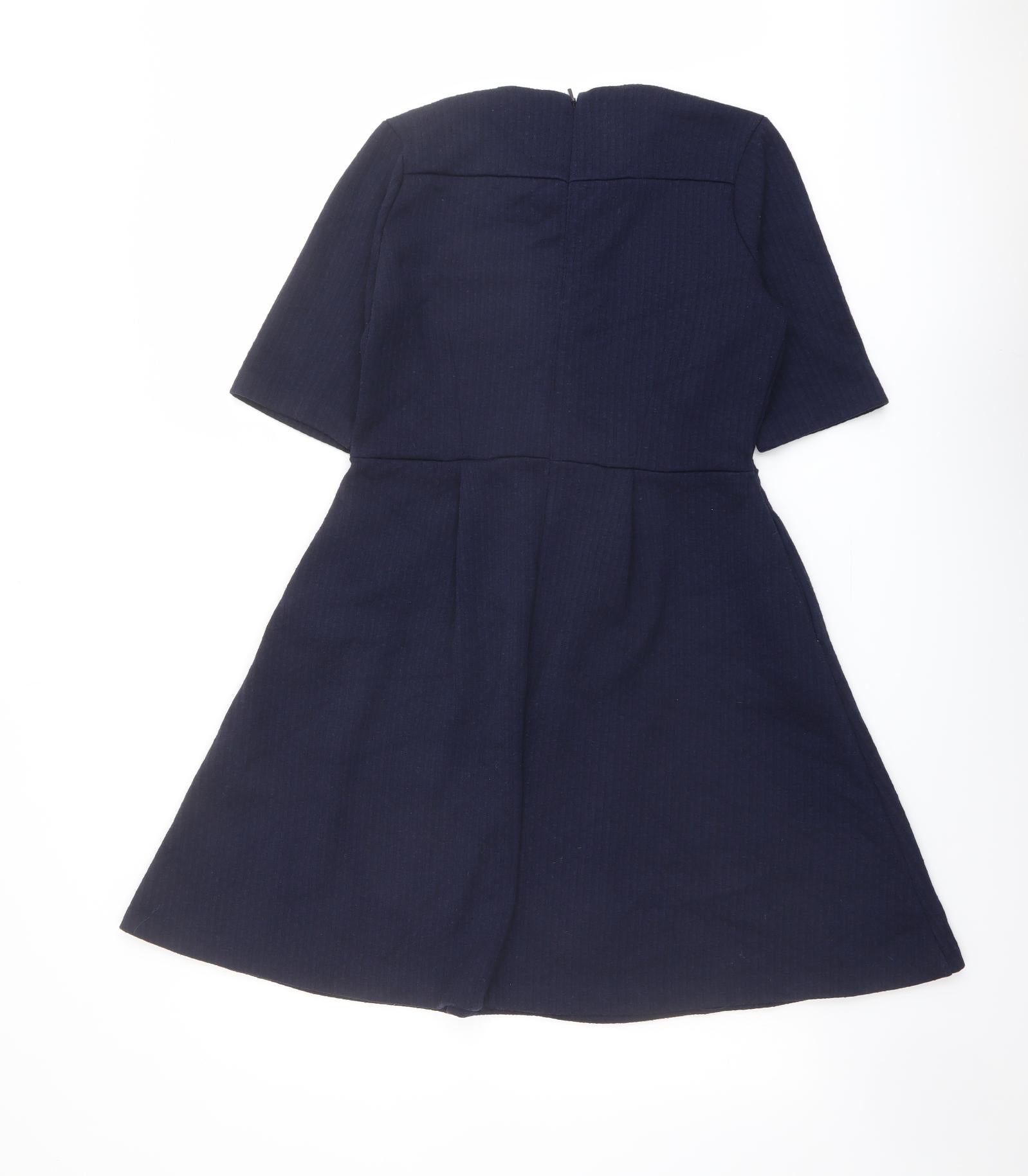 Womens Blue Polyester Fit & Flare Size 12 Round Neck Zip