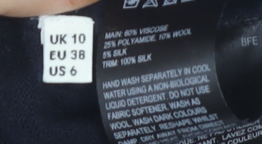 Elevate your casual wardrobe with this elegant Whistles Women's Pullover Jumper in a versatile dark blue hue. Designed in a cosy knit with a crew neck and long sleeves, this jumper promises comfort and style for the autumn and winter seasons. Crafted from a luxurious blend of viscose, polyamide, wool, and silk, it offers a soft touch and a flattering fit. The jumper is lined for added warmth, making it an ideal choice for colder days.With its regular fit, this jumper is perfect for casual outings, allowing you to stay effortlessly chic. The tight-knit style provides a sleek look while maintaining comfort. The minimalist no-pattern design keeps it simple yet sophisticated, suitable for pairing with any ensemble.Though in excellent condition, this jumper is pre-loved and comes without original tags. There are slight wrinkles that can be easily remedied with a gentle iron. Whether you're dressing up for a laid-back lunch or layering for a stroll in the park, this Whistles jumper adds a touch of luxury to your everyday style.