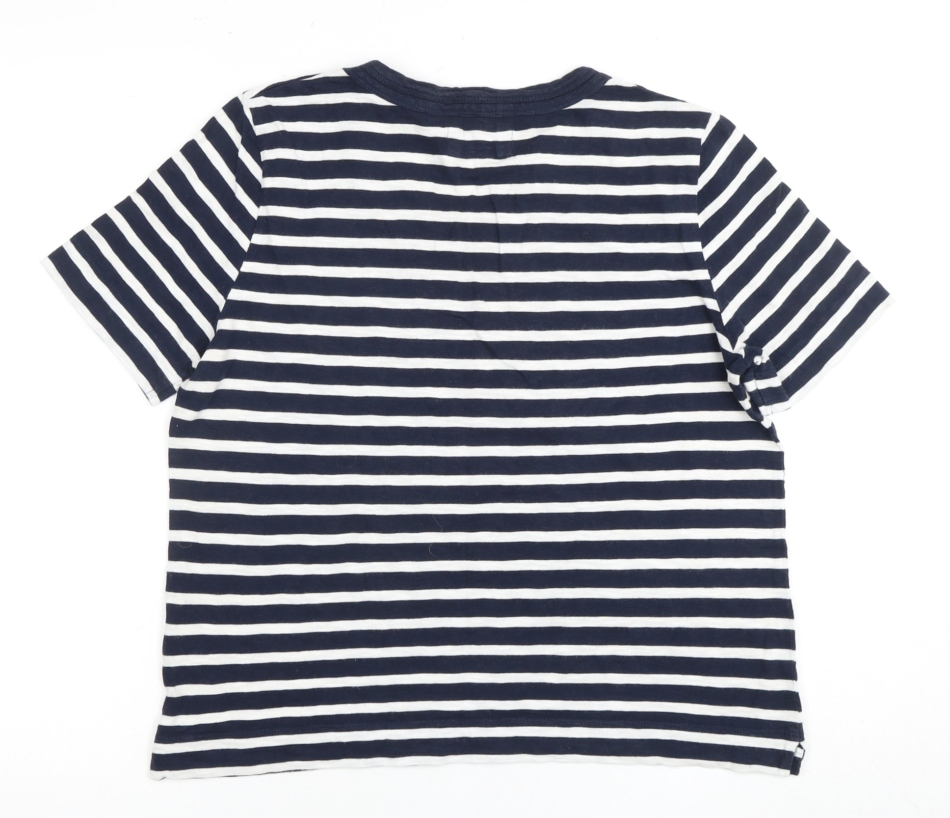Women's Blue Striped T-Shirt, Medium, Casual Jersey Top
