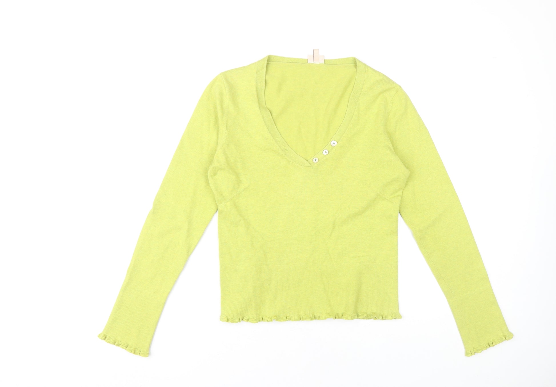 Elevate your wardrobe with this chic green jumper from Whistles. Designed for women seeking style and comfort, this jumper features a flattering V-neckline and long sleeves, making it an ideal choice for cooler days. Crafted primarily from cotton, the jumper promises softness and breathability, while the nylon blend adds durability and stretch. Perfect for layering or wearing alone for casual outings, this jumper boasts a simple, elegant aesthetic with button accents for added style. Suitable for a regular fit, it ensures comfort without compromising on elegance. This versatile piece can effortlessly complement your casual outfits, whether paired with jeans or skirts. In excellent condition with no visible marks or damage, it invites you to experience relaxed sophistication. Enhance your collection with this wear-anywhere jumper that adds a pop of colour and style to your attire.