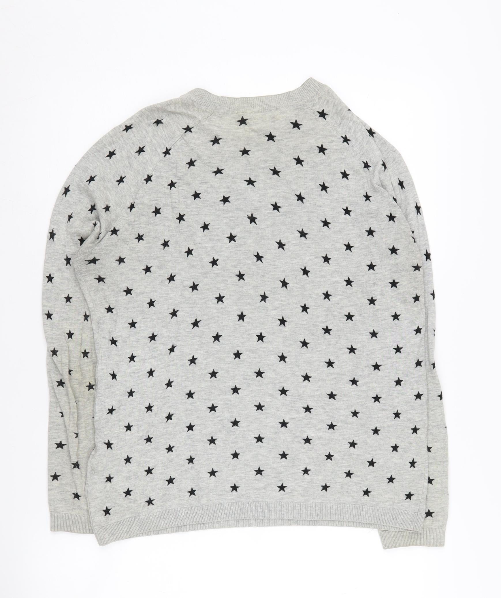 Women's Grey Star Pattern Pullover Jumper, Size 10