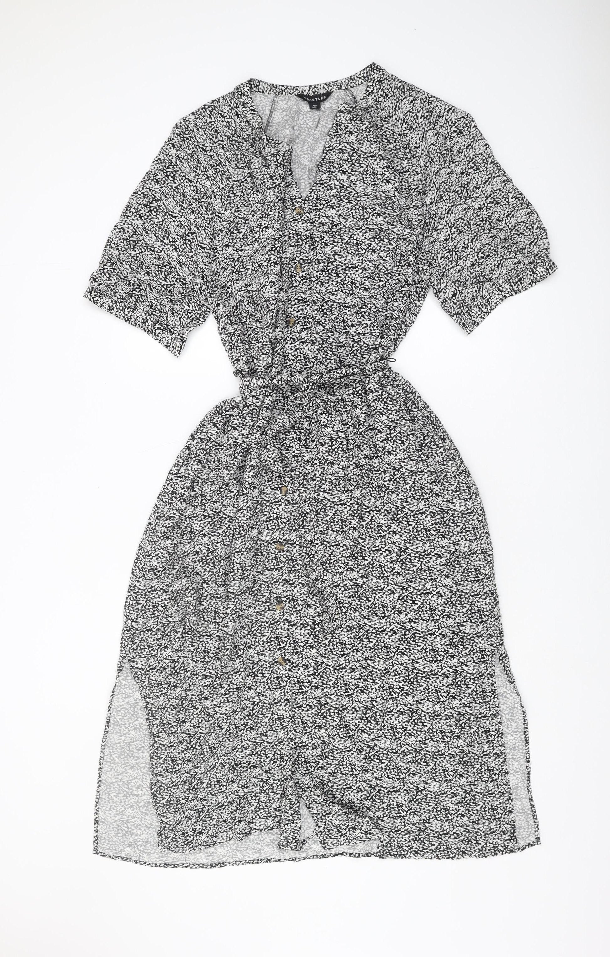 Experience the effortless style and comfort of this Whistles Women's Shirt Dress in a vibrant multicoloured pattern. Crafted for a modern and chic look, this dress embodies elegance with its V-neckline and half sleeves, providing a flattering silhouette for casual outings. It’s made from a premium blend of 55% cupro and 45% viscose, ensuring you stay comfortable throughout the day. The button-up closure adds a touch of classic sophistication, while the balloon sleeves create a contemporary flair. Perfect for casual occasions, this dress stands out with its woven fabric type and regular size fit, designed to suit all body types seamlessly. The dress's lining ensures a sleek fit, offering peace of mind with its machine washable care instructions. Whether you're stepping out for a coffee or attending a laid-back brunch, this shirt dress from Whistles makes an ideal choice. New with tags, you're assured an immaculate condition, presenting an excellent find for your wardrobe. Priced at just £75.00, it's a value-driven option that merges fashion with practicality. This dress is a versatile addition to any style collection, promising to keep you trendy all year round.
