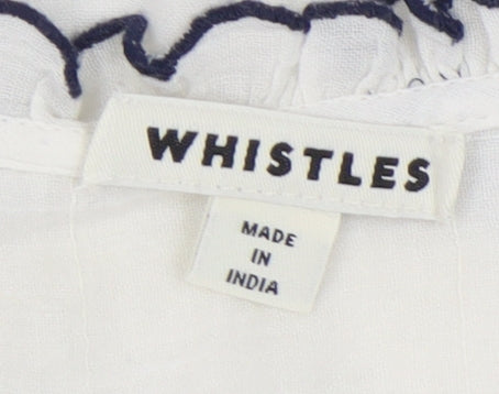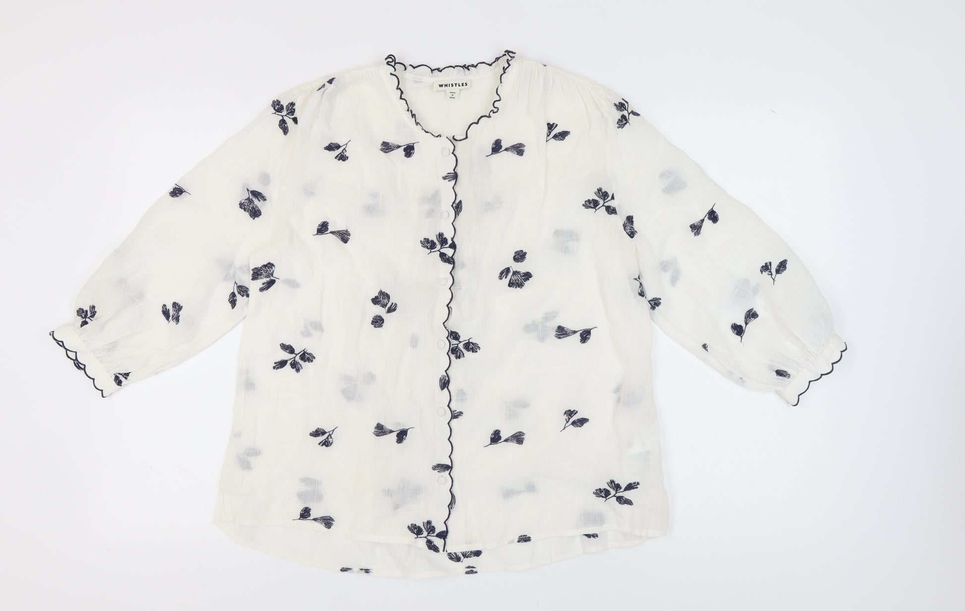 This elegant Whistles blouse is perfect for adding a touch of charm to any wardrobe. Tailored for women, it showcases a delicate floral pattern, beautifully embroidered on a crisp white backdrop, exuding timeless sophistication. The 3/4 length puff sleeves and round neckline enhance its effortlessly chic style, while the kimono-inspired design brings a unique flair. Crafted from 100% breathable cotton, this blouse is designed for comfort and style, making it ideal for spring and summer wear. Featuring a button closure, it allows for easy wear and removal, and its woven fabric type adds to the overall durability. Perfect for casual occasions, this blouse can seamlessly transition from a day at the park to a low-key evening outing. Despite its high-quality craftsmanship, the blouse is easy to care for with its hand wash only recommendation. Elevate your fashion game with this versatile piece, combining modern elegance with everyday practicality.