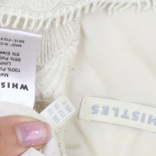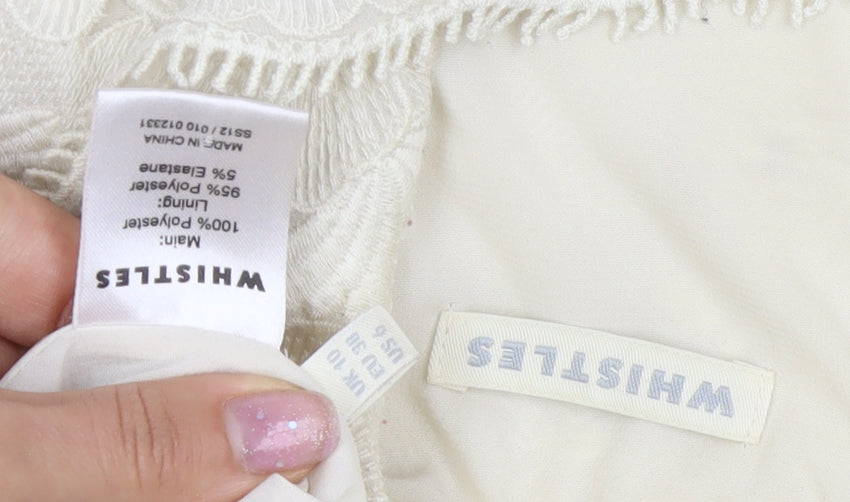 Elevate your wardrobe with this stunning Whistles Women's Floral Lace Camisole Blouse, perfect for any casual or party occasion. Crafted in a beautiful white cotton fabric with intricate floral embroidery, this blouse features a delicate lace finish that's ideal for spring and summer outings. The sleeveless design and round neckline offer a classic, elegant look that never goes out of style. Ideal for women seeking both comfort and sophistication, it boasts a regular fit and a practical side zip closure for easy wear. The blouse is lined for added comfort and is perfect for pairing with your favourite trousers or skirts. Whether you're attending a casual brunch or a stylish cocktail party, this versatile piece will be a staple addition to your ensemble. Available in UK size 10, it's a fabulous choice for those looking to make a chic statement effortlessly. With its high-quality construction from Whistles, you can enjoy both durability and style. Please note that this exquisite piece requires dry cleaning to maintain its pristine condition. Don't miss out on this elegant addition to your wardrobe!