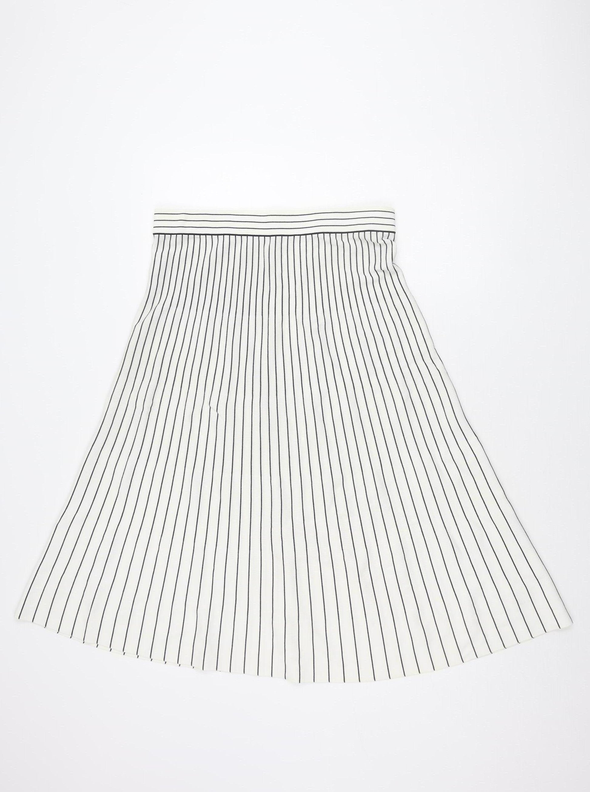Elevate your wardrobe with this elegant Whistles Women's Skirt. Crafted with a chic striped pattern, this piece in a classic white hue adds a touch of sophistication to any outfit. Made from a comfortable blend of 63% Viscose and 37% Polyamide, it offers both style and comfort. Perfect for a day out or a casual meeting, this skirt pairs beautifully with a solid top and ankle boots for a complete look. The regular size 14 ensures a flattering fit for the modern woman, making it a versatile addition to your collection. Whether it's for workwear or a casual city outing, this skirt delivers on style with minimal effort. Please note that the garment should be hand washed only to maintain its quality. With no signs of damage, it promises long-lasting wear, making it a valuable addition to your fashion arsenal. A must-have for those who appreciate timeless elegance with a contemporary twist.