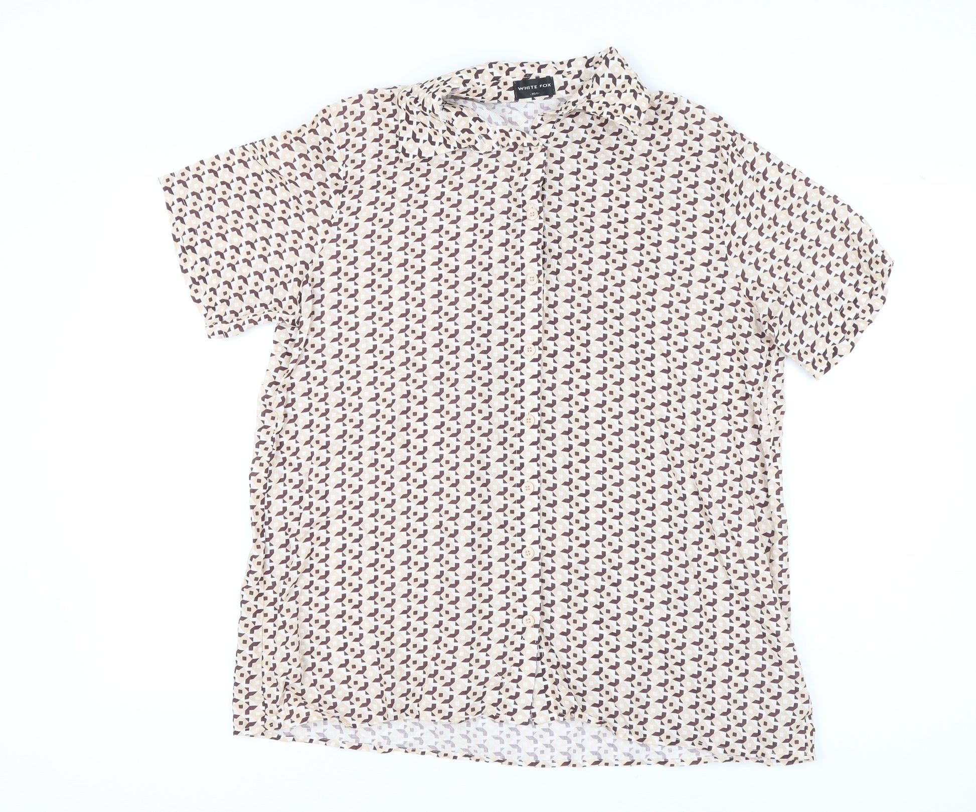 Elevate your casual wardrobe with this stylish White Fox women's button-up shirt, designed in an eye-catching multicoloured geometric print. Made from a premium blend of 60% viscose and 40% linen, this top offers both breathability and lightweight comfort, making it perfect for the warmer months of spring and summer. The collared neckline lends a polished feel, while the short classic fitted sleeves keep it relaxed and versatile for everyday wear.The quality woven fabric feels soft against the skin, ensuring you stay comfortable throughout the day. Designed in a regular fit, it strikes the perfect balance between ease of movement and a flattering silhouette. The full button closure makes it easy to style – wear it tucked into jeans for a clean look or leave it open over a tank for a more laid-back vibe.This shirt embodies simplicity and chic minimalism, ideal for casual outings, weekend brunches, or even dressing down a work look. The lightweight nature of the fabric makes it an excellent layering piece, and the breathable construction ensures you stay cool and comfortable on warmer days.In excellent pre-loved condition, this piece shows light signs of gentle wear with no noticeable flaws, allowing you to enjoy designer style at a fraction of the original cost. The high-quality viscose and linen blend provides lasting durability and a touch of natural texture that elevates the overall design.Pair it with tailored shorts for a sunny day out, layer under a cardigan in transitional weather, or style with your favourite denim for a timeless casual look. Whether you are a fan of statement prints or just looking to add a versatile, comfortable top to your wardrobe, this White Fox piece is bound to become a favourite.Don’t miss the chance to own this beautifully patterned, breathable, and stylish shirt, ideal for creating easy yet put-together outfits all season long.
