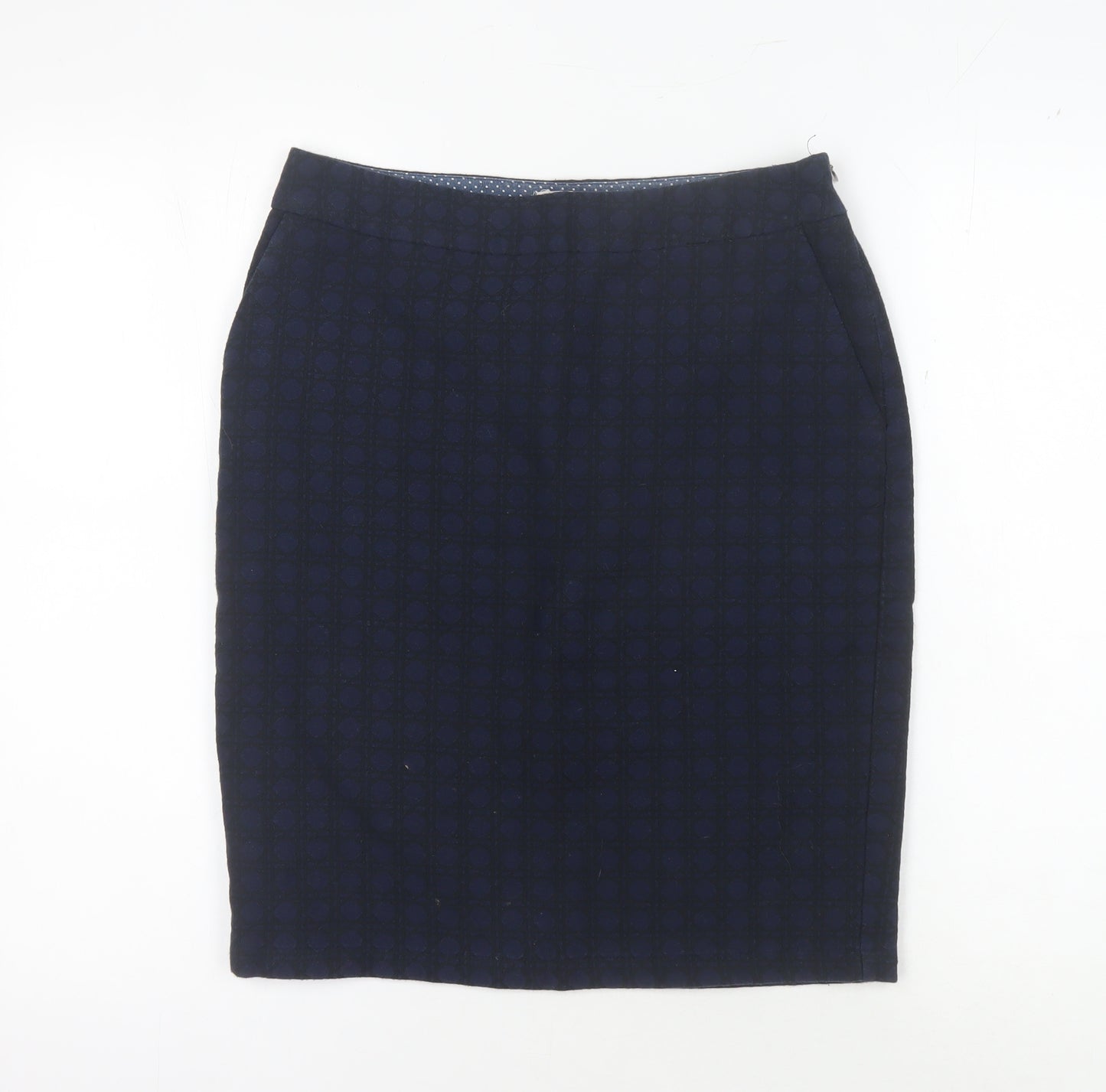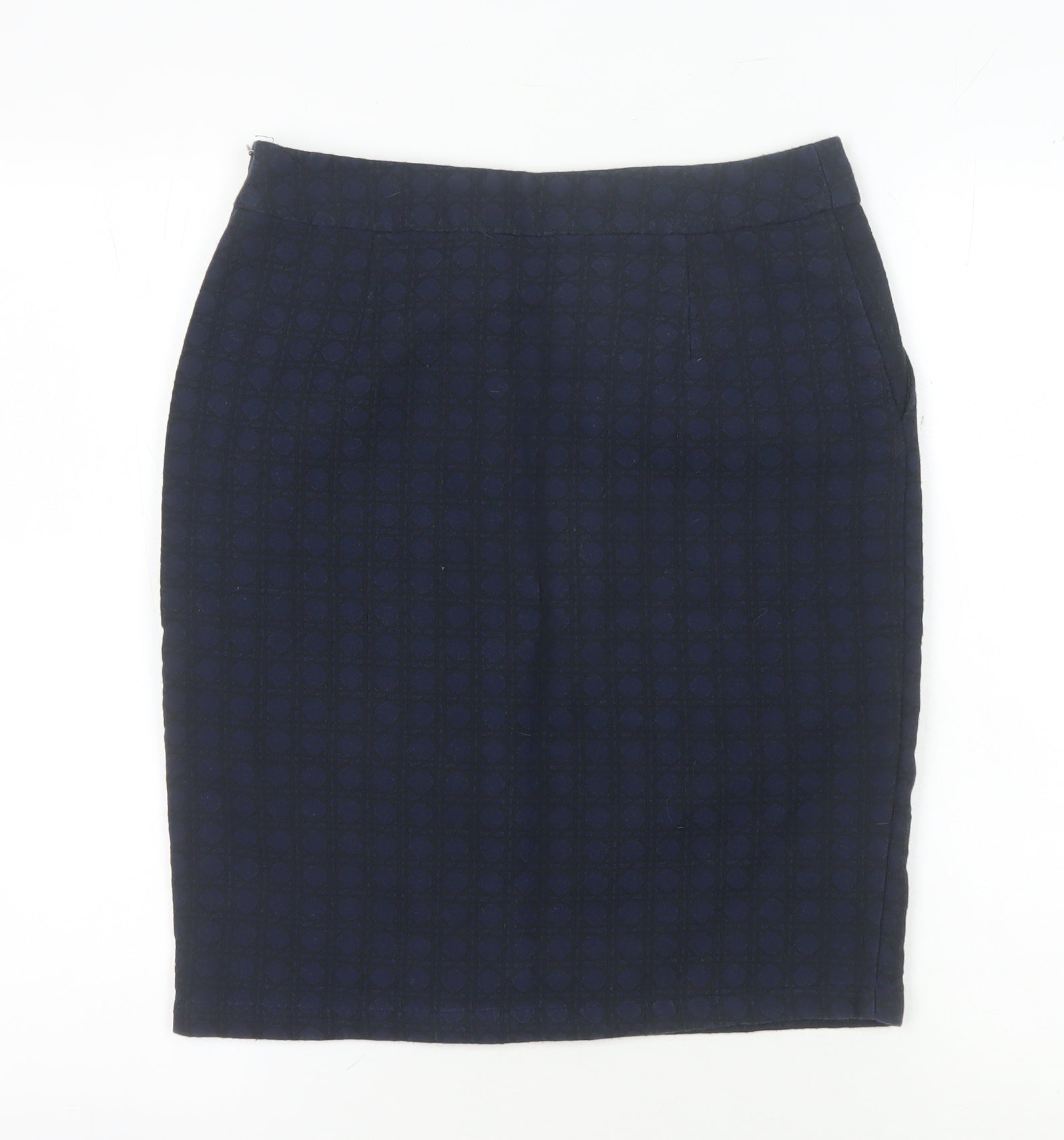 Discover the perfect blend of style and comfort with this White Stuff Women's Pencil Skirt. Designed for the modern woman, this knee-length skirt in a classic blue shade is a versatile addition to any wardrobe. Cut in a straight and pencil style, it offers a flattering silhouette that transitions seamlessly from business meetings to casual outings. Crafted primarily from 75% cotton and 25% polyester, it ensures durability while providing a soft touch and comfortable fit throughout the day. The elegant geometric pattern adds a touch of sophistication, making it ideal for both formal and informal occasions. Suitable for autumn and spring, its mid-rise design enhances ease of wear. Despite being in excellent condition with no visible defects, it delivers quality and style comparable to new. Pair it with your favourite blouse or top and step out in confidence, whether you’re headed to a business meeting or enjoying a casual day out. Affordable elegance awaits you with this essential wardrobe staple from White Stuff.