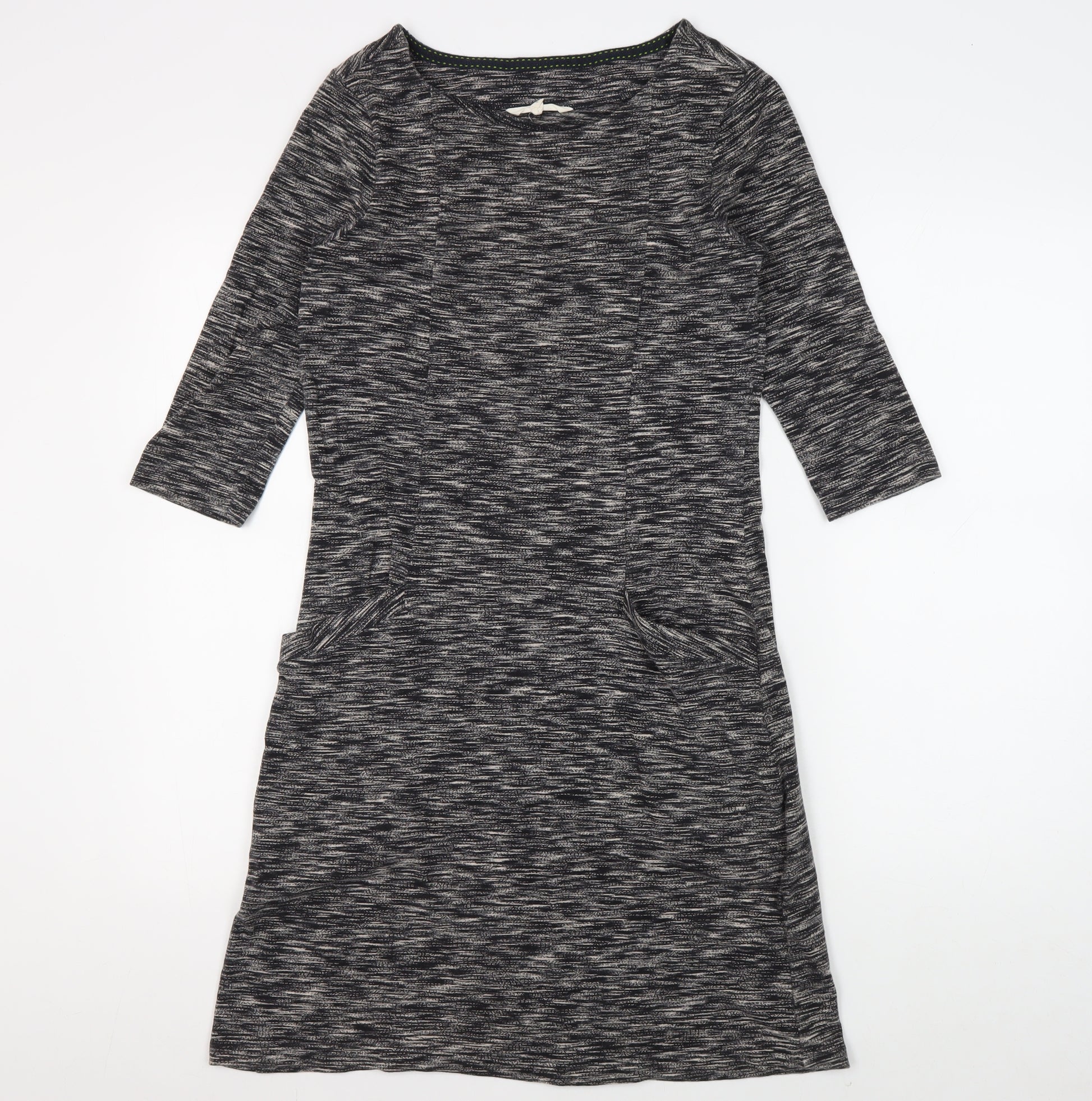 Upgrade your wardrobe with this stylish dress from White Stuff, perfect for day-to-day dressing with added elegance. Crafted from a soft jersey fabric, this dress ensures comfort throughout the day. The 3/4 sleeve length and chic boat neckline give it a timeless appeal, while its regular size 8 ensures a flattering fit. Subtle grey colouring allows this piece to be easily matched with your favourite accessories. Made from a durable cotton and elastane blend, it offers a slight stretch for ease of movement. Whether you're running errands or meeting friends for coffee, this dress is versatile enough to suit any occasion. Don't miss out on this wardrobe essential, both stylish and practical for any season.