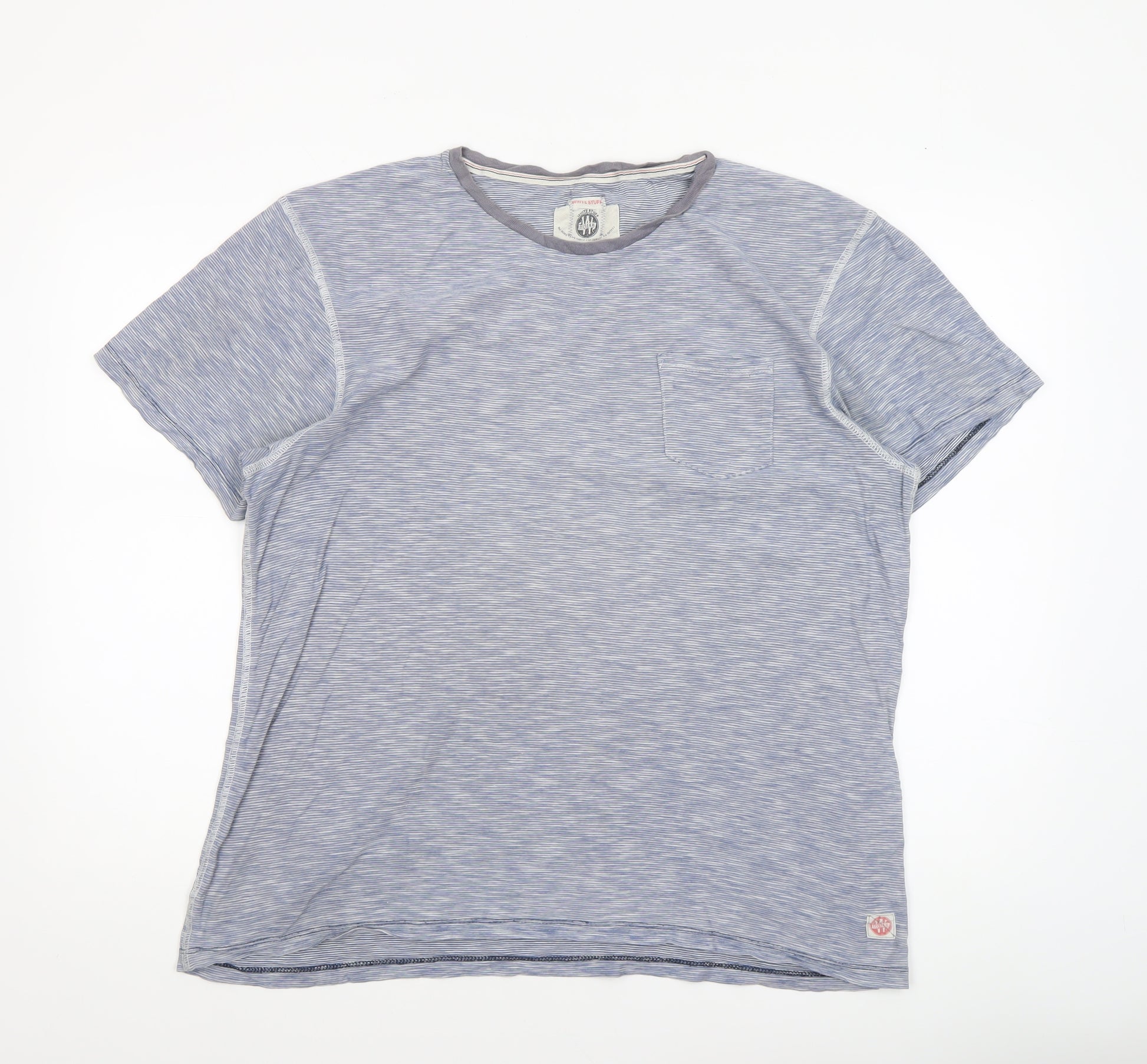 Fatface Men's Blue Striped Cotton Crew Neck Short Sleeve T-Shirt L
