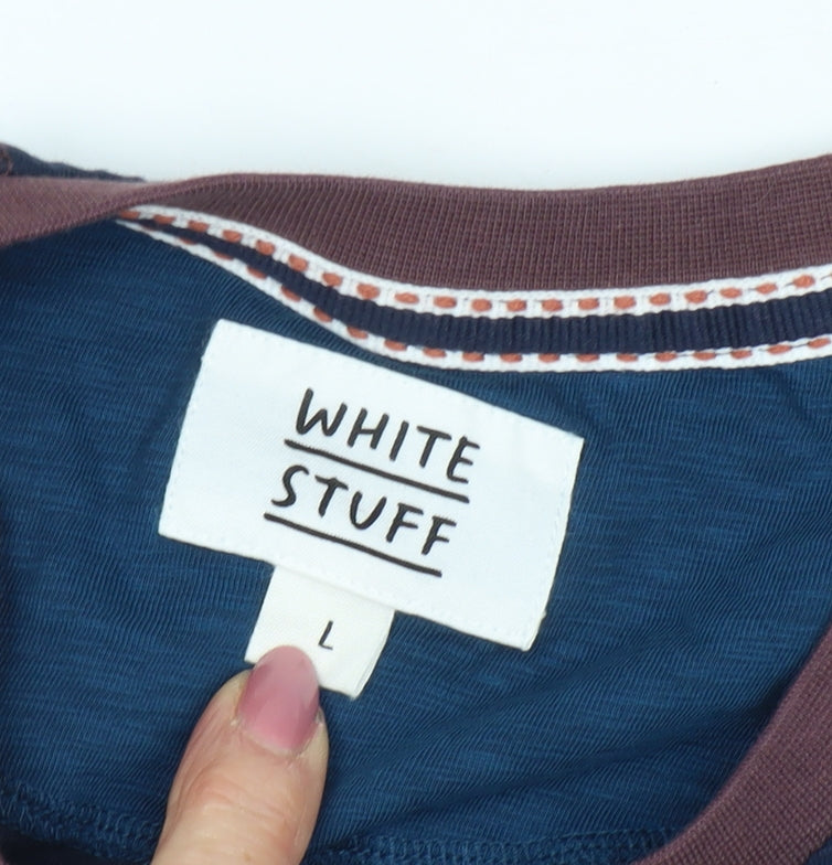 Embrace effortless style with this White Stuff Men's T-Shirt, perfect for casual outings or laid-back gatherings. Crafted from high-quality cotton, this navy blue t-shirt promises superior comfort and breathability for all-day wear. Featuring a classic crew neck design and long sleeves, it's ideal for cooler weather while ensuring a relaxed fit that moves with you. This solid pattern piece offers versatility, easily pairing with jeans or shorts for a trendy look. Available in size L and designed for a regular fit, this jersey knit t-shirt is machine washable, adding practicality to its list of attributes. Whether you're stepping out for a day with friends or unwinding at home, this White Stuff t-shirt is your go-to option, blending style with functionality.