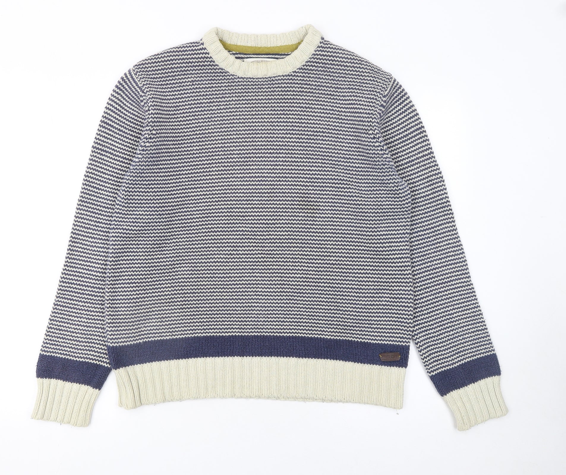 Men's Blue Striped Cotton Knit Jumper Medium Crew Neck