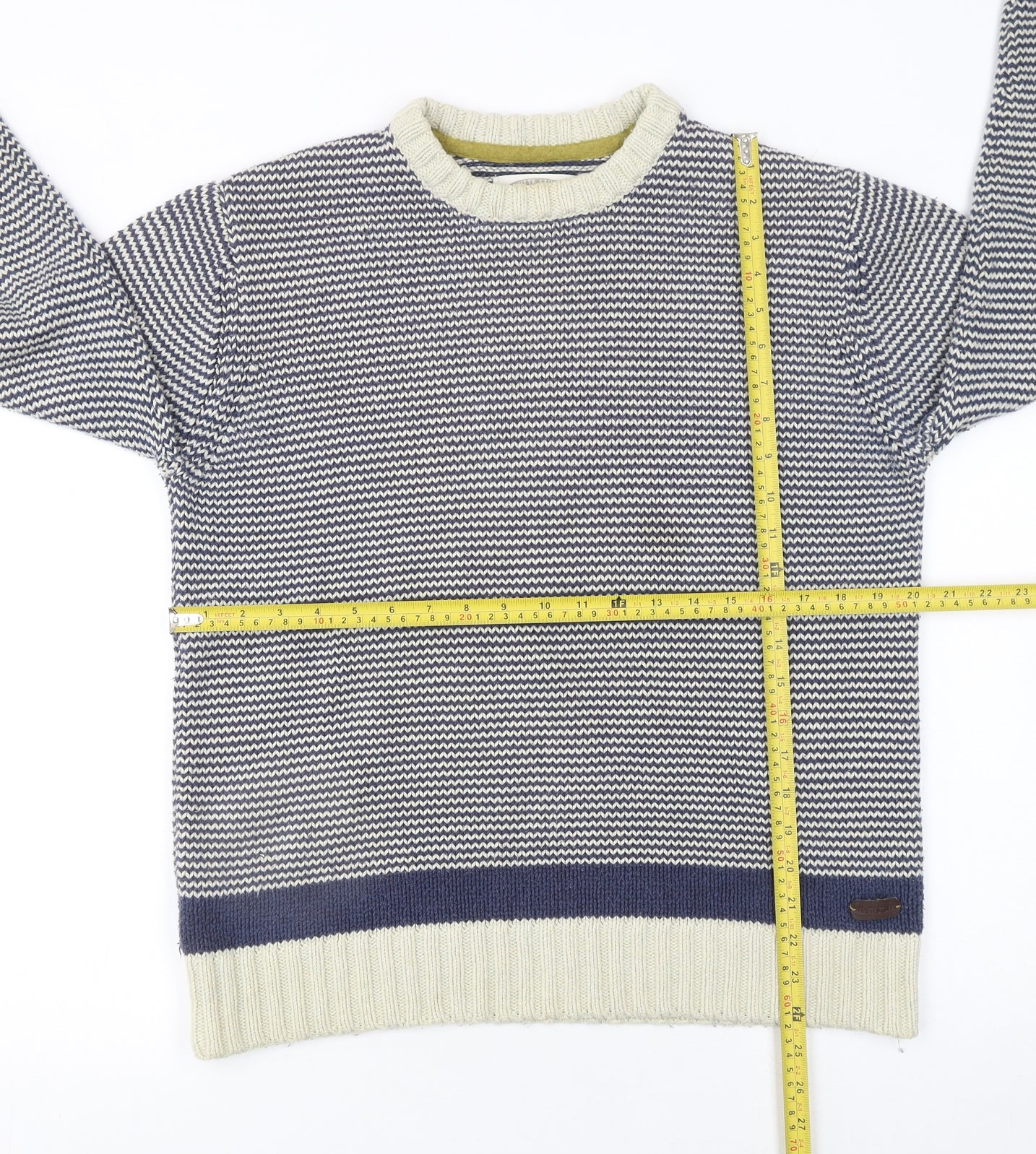 Regular price£17.25£1725Regular priceUnit price / perSale price £17.25 GBPFat Face Men's Blue Waffle-Knit Wool Blend Crew Neck Jumper Size M
