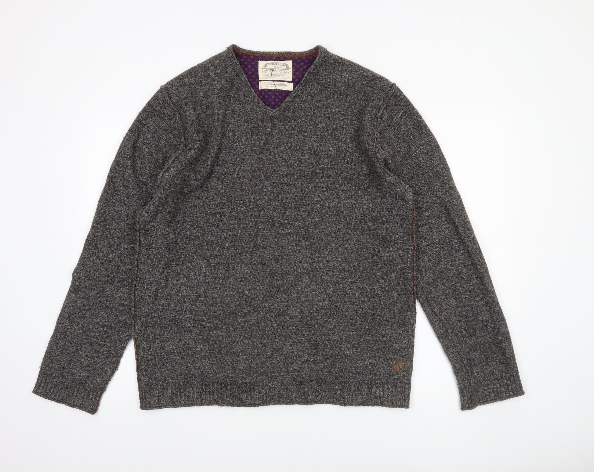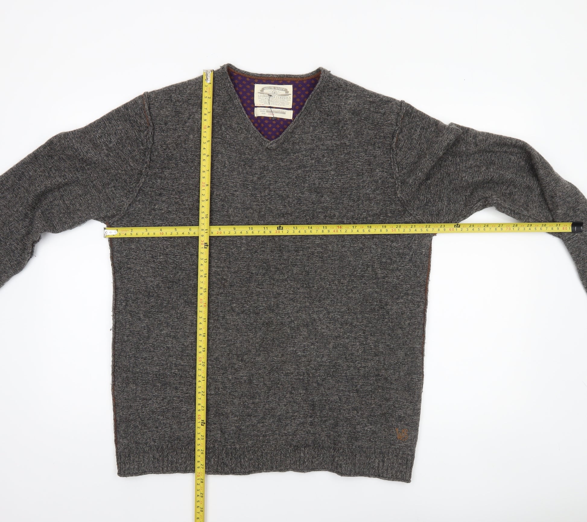 This White Stuff men's grey jumper offers a blend of warmth, comfort, and timeless style. Crafted from a soft and insulating mix of 80% lambswool and 20% nylon, the fabric provides a classic knit feel that’s breathable, cosy, and ideal for cooler months. Designed in a flattering regular fit, this jumper delivers a relaxed yet refined silhouette suitable for everyday wear. The fine knit construction ensures a clean, modern appearance, while the V-neck design adds versatility — perfect for layering over a crisp shirt for smart-casual outings or wearing alone for a laid-back weekend look.The understated grey colour makes it a highly versatile piece that pairs seamlessly with both denim and chinos, offering great day-to-evening adaptability. Subtle ribbed hems and cuffs contribute to its refined look and ensure a comfortable fit that retains its shape over time. The high-quality lambswool blend offers durability and warmth, making this jumper an ideal choice for autumn and winter seasons.Suitable for casual occasions, this jumper embodies the classic White Stuff craftsmanship with thoughtful finishing touches that set it apart from ordinary knits. Though it has been gently worn, the overall condition remains excellent, with no visible marks, pilling, or flaws. This piece brings together comfort and sophistication, ideal for the modern man looking to stay stylish yet relaxed.Whether you’re dressing for a casual workday, a weekend getaway, or layering up for an evening out, this versatile grey jumper is a wardrobe essential. Its quality materials and enduring design ensure dependable wear for seasons to come. Choose it to elevate your knitwear collection with a smart, understated piece from a brand known for its contemporary British charm.