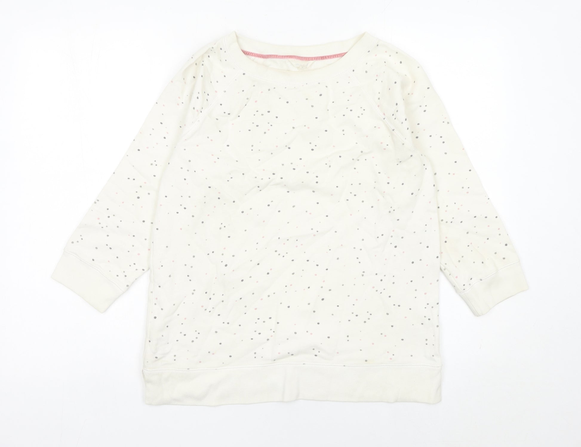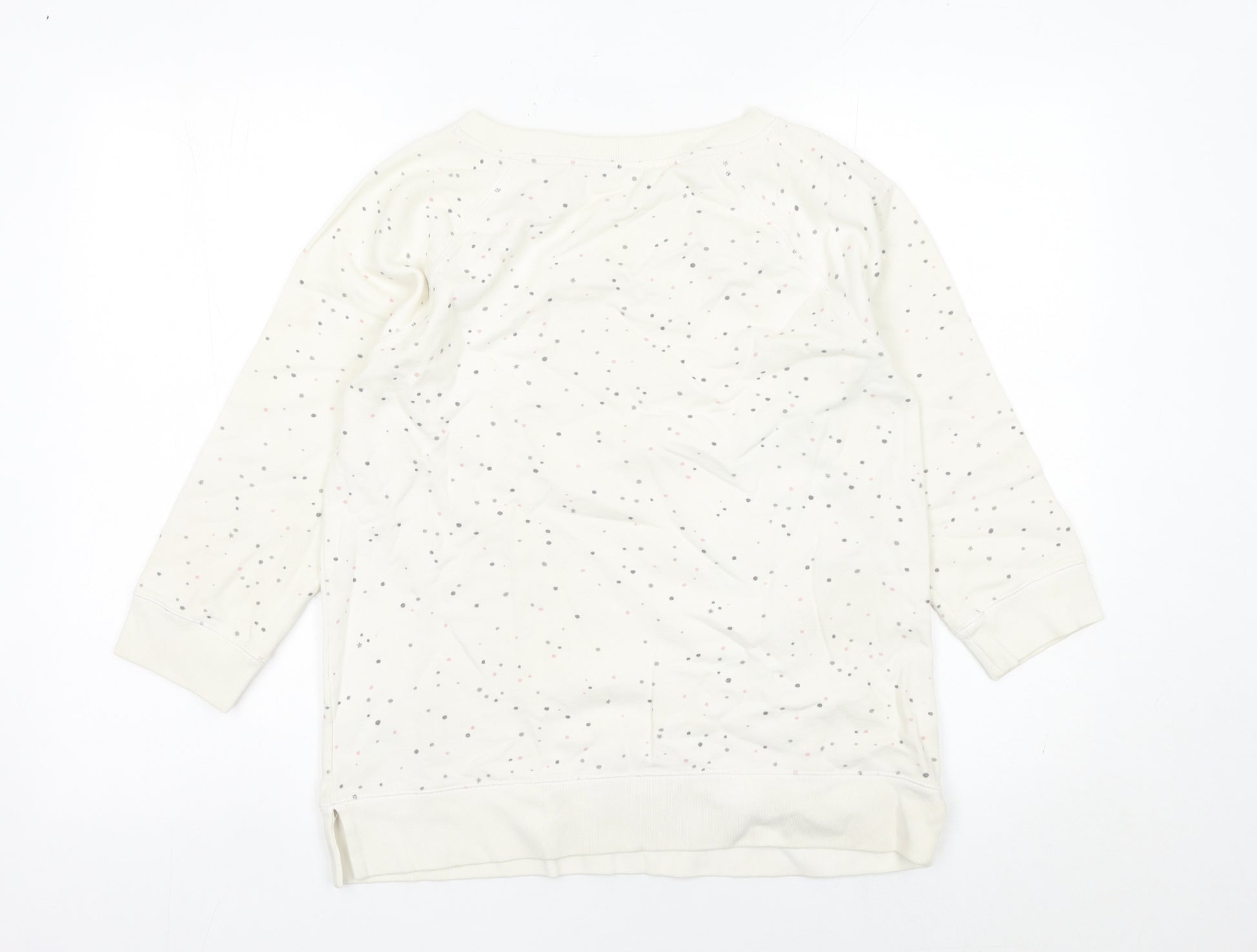 Women Ivory Cotton Polka Dot Pullover Sweatshirt Size S