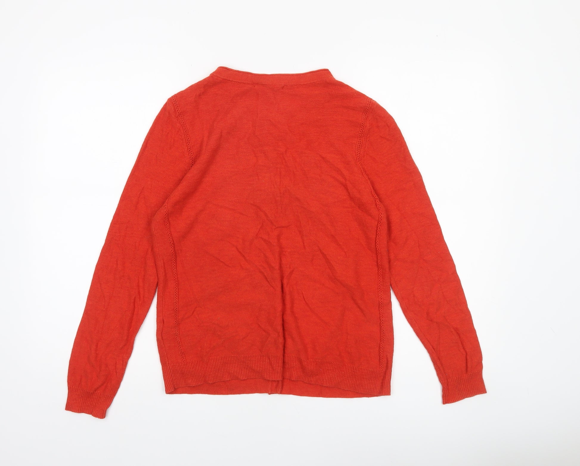 Women Red Cotton Cardigan UK 12 Long Sleeve Knit