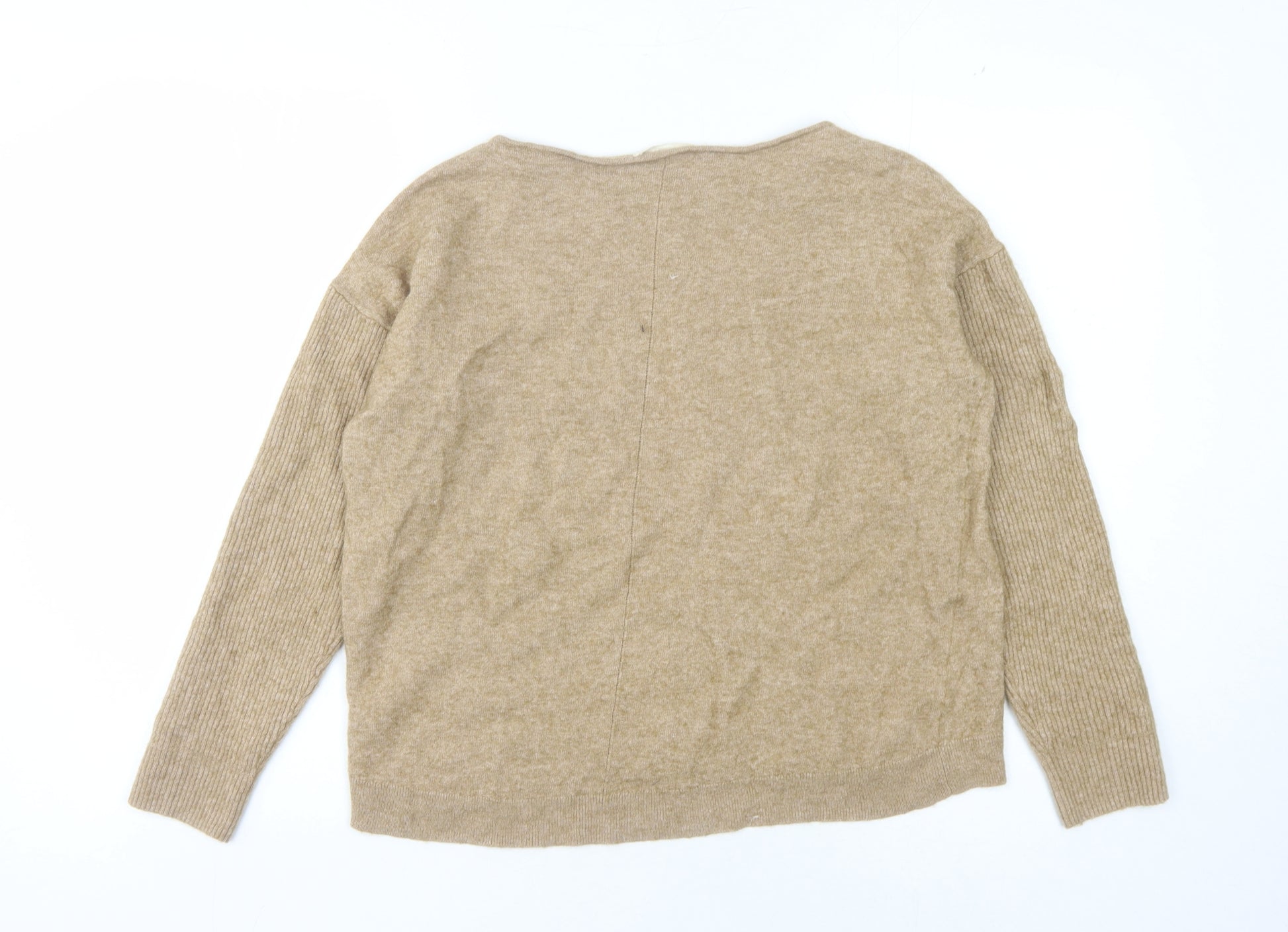 Discover effortless style with this White Stuff women's pullover jumper. Crafted from soft, luxurious 100% merino wool, it ensures comfort and warmth, making it an ideal choice for the cooler seasons. The classic beige colour complements any wardrobe, while the relaxed boat neck adds a touch of elegance to this everyday essential. This jumper features long sleeves with a ribbed texture, offering a subtle contrast to the smooth body. Perfectly versatile, it suits both casual outings and more dressed-up occasions, layering seamlessly with other pieces. With a regular fit and available in a UK size 18, it provides a flattering silhouette for a range of body types. Although slightly worn in appearance, it maintains a high-quality feel, promising to be a staple in your collection for years to come.