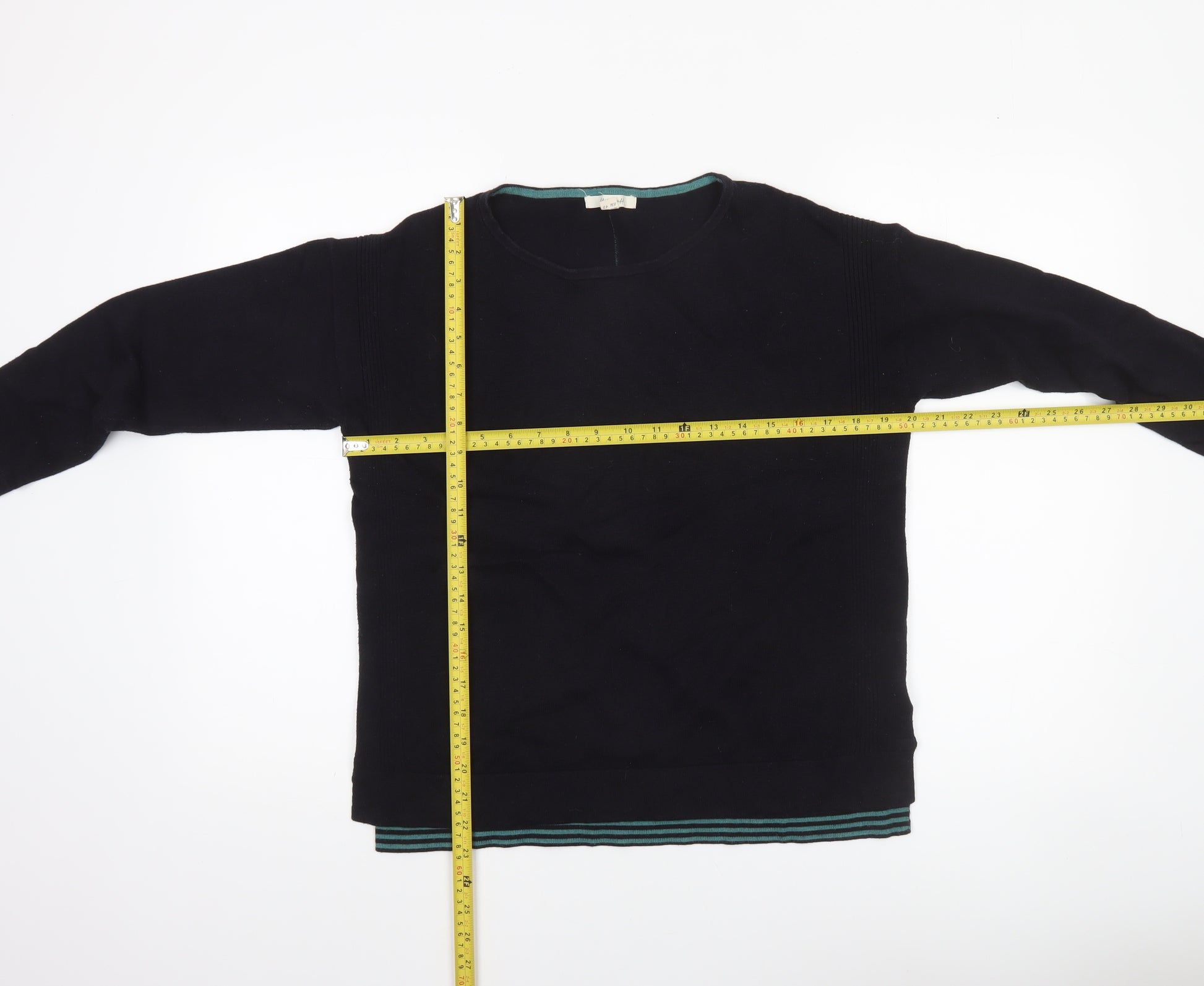 Women’s Black Cotton Knit Jumper UK 12 Crew Neck