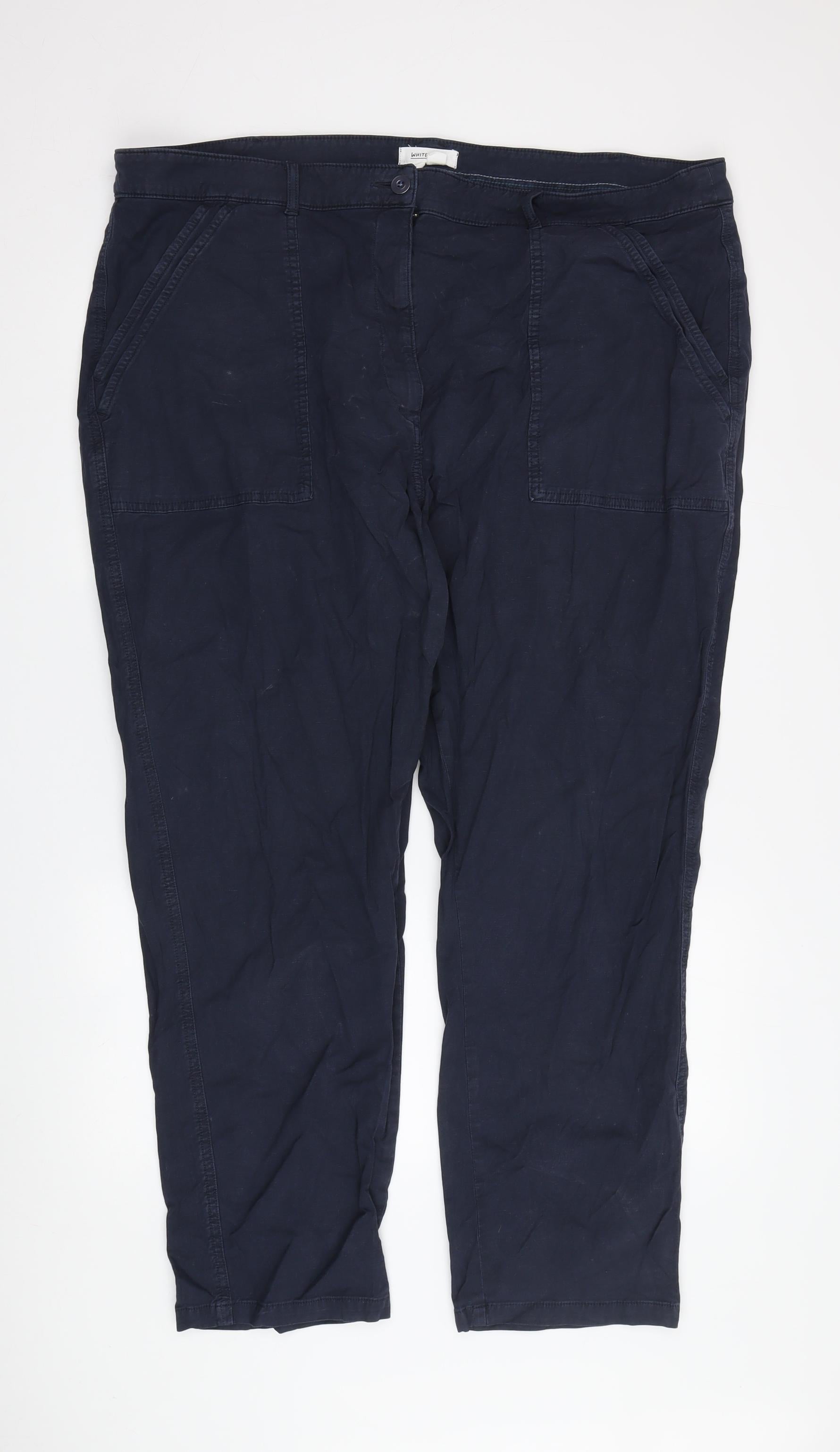 Isle Womens Blue Cotton Cropped Trousers Size 22 Elastic Waist