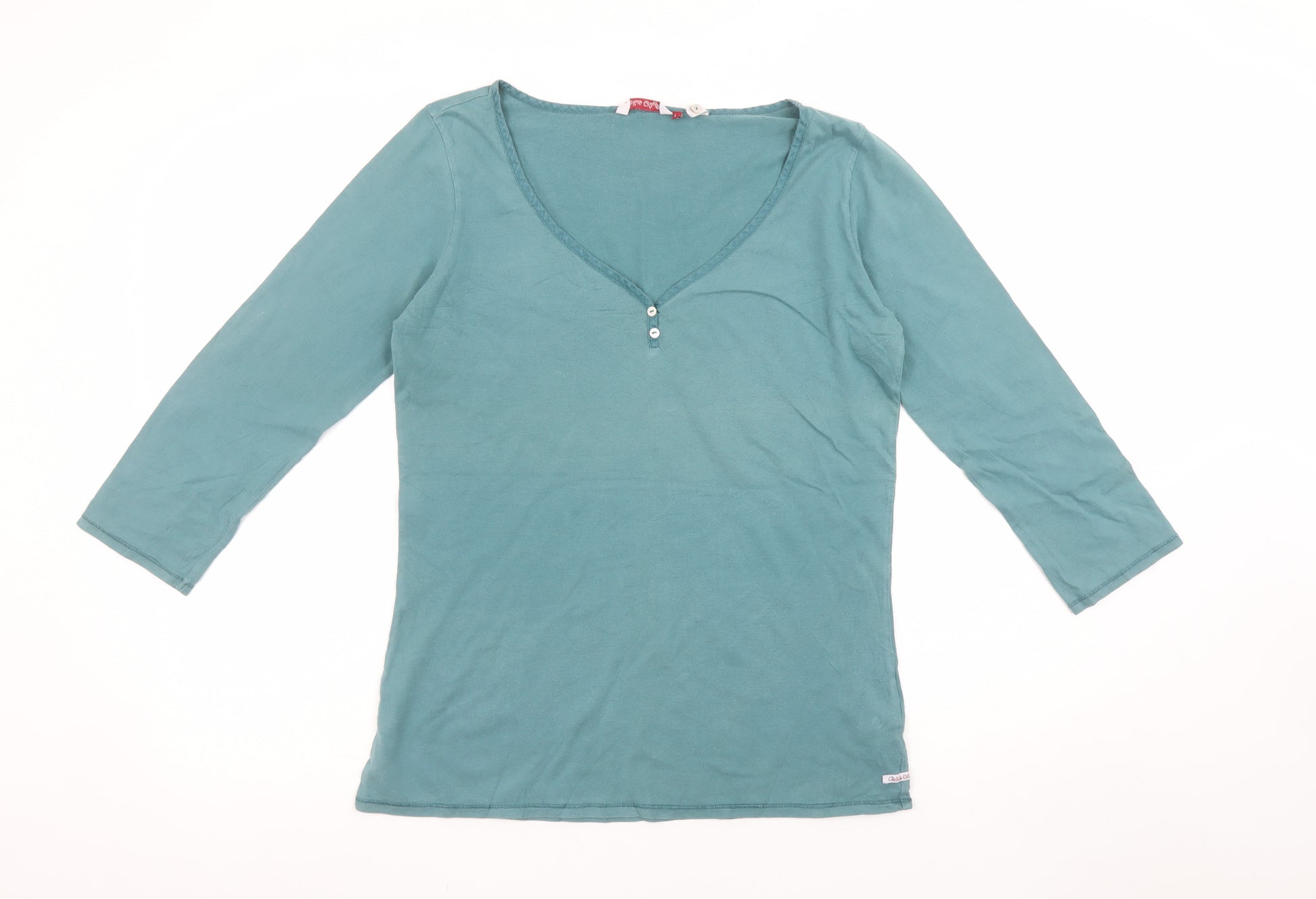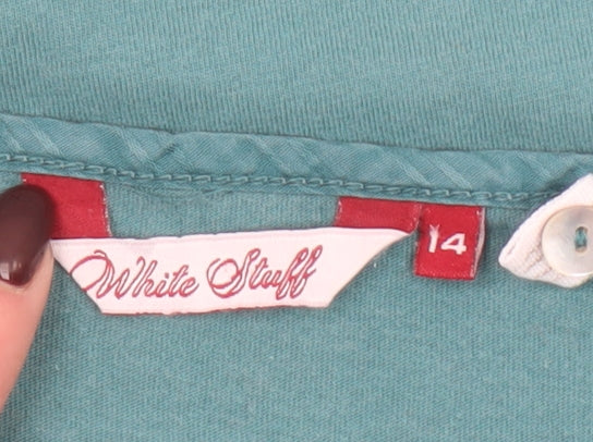 This beautiful White Stuff women’s green T-shirt in size 14 combines effortless everyday style with the comfort that the brand is renowned for. Crafted from 100% cotton, it offers a soft, breathable, and lightweight feel that makes it perfect for year-round comfort, especially ideal for spring, summer, and autumn wear. The jersey fabric gives it a lovely smooth texture, ensuring easy movement and a flattering fit. Designed in a timeless solid shade of green, this top brings a touch of understated charm to your casual wardrobe. The simple yet stylish design features a V-neckline with small buttons adding a subtle accent, while the 3/4 length sleeves provide just the right amount of coverage for in-between seasons. The regular fit offers a relaxed but neat silhouette, making this T-shirt easy to pair with jeans, shorts, or skirts for versatile everyday looks. It’s finished with signature White Stuff details that convey quality and reliability, such as the branded tab at the hem. The breathable all-cotton material ensures all-day comfort, and the machine washable finish makes it practical for regular wear. The piece is in excellent pre-loved condition, showing only very light signs of wear with no noticeable flaws or damage. A piece that brings together simplicity, comfort, and classic British casual style, it’s a must-have addition to any wardrobe. Whether you’re dressing for relaxed weekends, casual meet-ups, or an easy workday ensemble, this top delivers dependable style that never goes out of fashion. Enhance your wardrobe with this charming, effortlessly wearable White Stuff cotton V-neck top and enjoy both comfort and timeless appeal in one versatile piece.