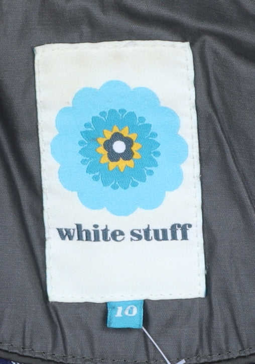 Step into the colder seasons with confidence and comfort in this stylish White Stuff women’s parka coat. Designed in a classic green tone, this mid-length coat is the perfect outerwear for autumn and winter. Crafted from 100% cotton for the outer shell, it provides durability and breathability, while the cosy lining blends cotton and polyester for an extra touch of warmth. The hood adds practicality on cold or drizzly days, making it ideal for everyday wear or outdoor adventures. Featuring a flattering waist drawstring and toggle fastenings, the coat allows for adjustable shaping, while the front zip and button accents offer both functionality and timeless appeal. Its multiple pockets combine style with convenience, providing ample space for your essentials. The regular fit design offers comfort and room for layering over jumpers and seasonal outfits. This excellent condition coat shows minimal signs of wear, reflecting its high-quality construction and care. The mid-length cut pairs beautifully with jeans and boots, making it a versatile piece for everything from casual walks to school runs or weekend errands. White Stuff’s attention to detail shines through in its craftsmanship, with neat stitching and a soft inner lining for a cosy, snug fit. Seamlessly blending practicality and effortless charm, this parka will quickly become a go-to staple in any wardrobe. Designed for women who value comfort without compromising on style, it delivers a reliable outer layer for transitional weather and cooler days. Whether you’re commuting, travelling, or enjoying outdoor outings, this coat provides warmth and timeless appeal. Add a touch of relaxed sophistication to your wardrobe with this White Stuff cotton parka coat – dependable for the season and stylish enough for any casual occasion.