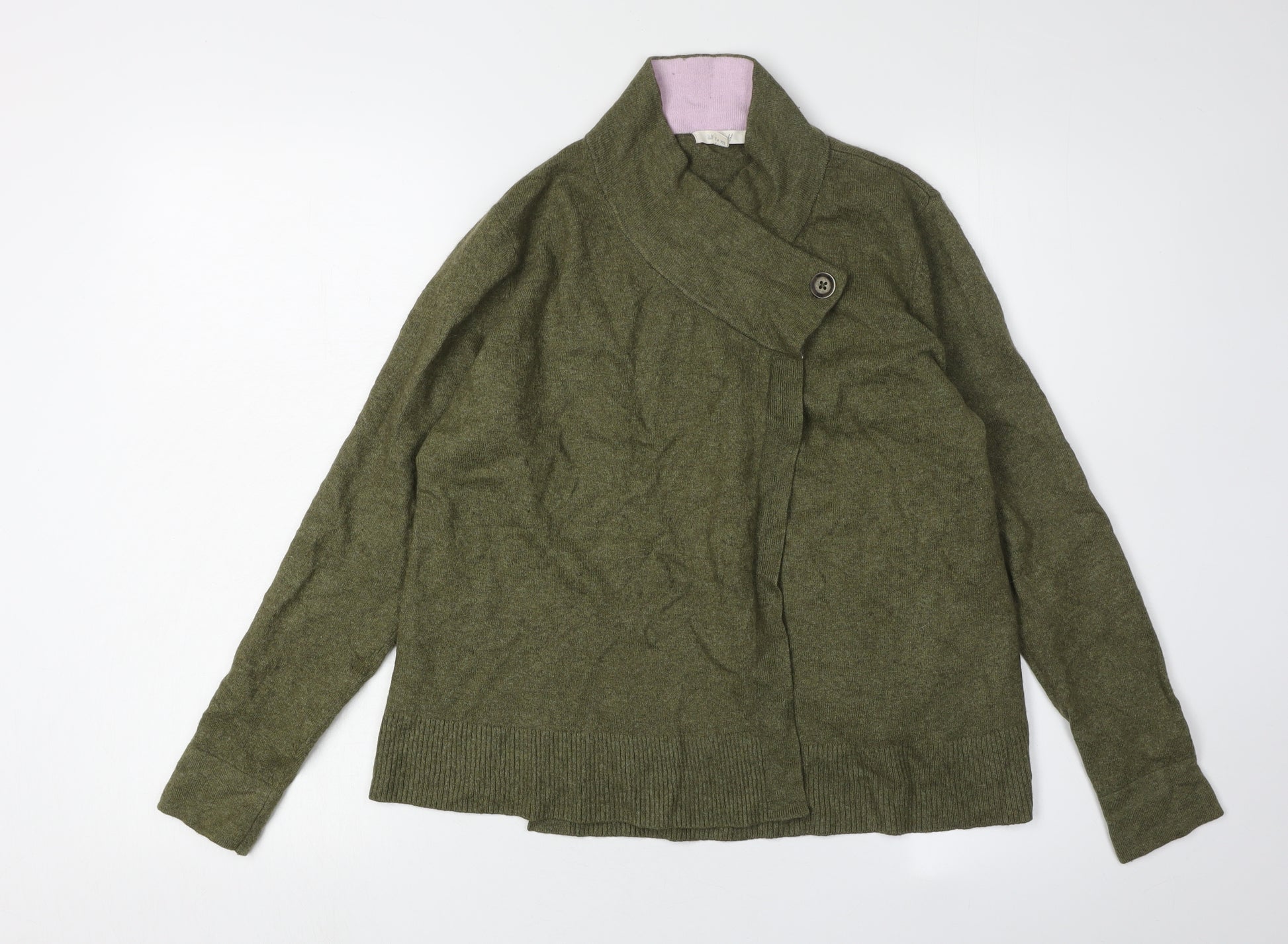 Discover this elegant White Stuff women's jumper, designed to provide both comfort and style. With a sophisticated high neck and long sleeves, it's the perfect choice for those colder autumn and winter days. The rich green colour adds a touch of nature-inspired beauty to your wardrobe, making it ideal for casual outings or relaxed weekends. This jumper is crafted from a blend of viscose, nylon, merino wool, cotton, and cashmere, ensuring a warm, cozy feel with a lightweight touch. The tight-knit fabric and button accent bring a unique texture and charm, while the regular fit ensures a comfortable wear for all shapes. Although gently used, it is in excellent condition without its original tags. Hand washable for easy care, this jumper is a versatile piece for any closet. Secure yours now and build a refreshing outfit that’s both fashionable and functional.