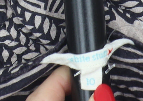 Elevate your casual wardrobe with this stylish tunic from White Stuff. Perfectly tailored for women, this tunic is designed in a size 10, offering a regular fit for ultimate comfort and style. The 3/4 sleeves and scoop neckline add a touch of elegance, making it a versatile piece that can easily transition from day to night. Crafted from 100% cotton, it ensures breathability and comfort throughout the day, making it ideal for spring and autumn wear.This multicoloured tunic features an eye-catching geometric pattern that adds a unique flair to its overall design. Whether paired with jeans or leggings, this tunic can effortlessly complement a wide range of looks, making it a must-have in any woman's wardrobe.In excellent condition, with slight signs of wear that add character without compromising quality, this garment offers great value for money. Priced competitively at £12.75, it's an affordable way to enhance your clothing collection with a genuine White Stuff piece. This tunic is machine washable, making it easy to care for and maintain, ensuring it remains a staple in your ensemble for seasons to come.Whether you're heading to a casual brunch or an informal gathering, this tunic promises comfort, style, and a splash of colour to brighten your day. Don't miss the chance to own a versatile, quality piece from a trusted brand like White Stuff.