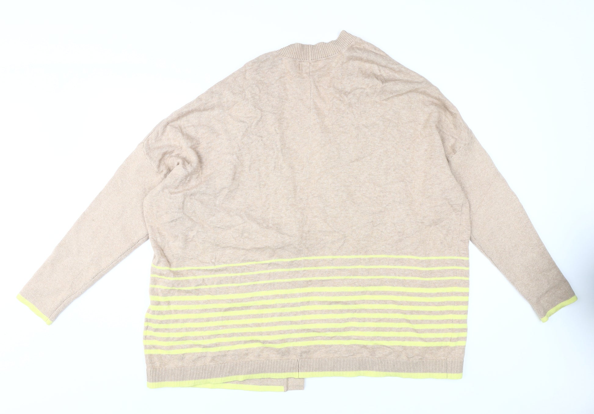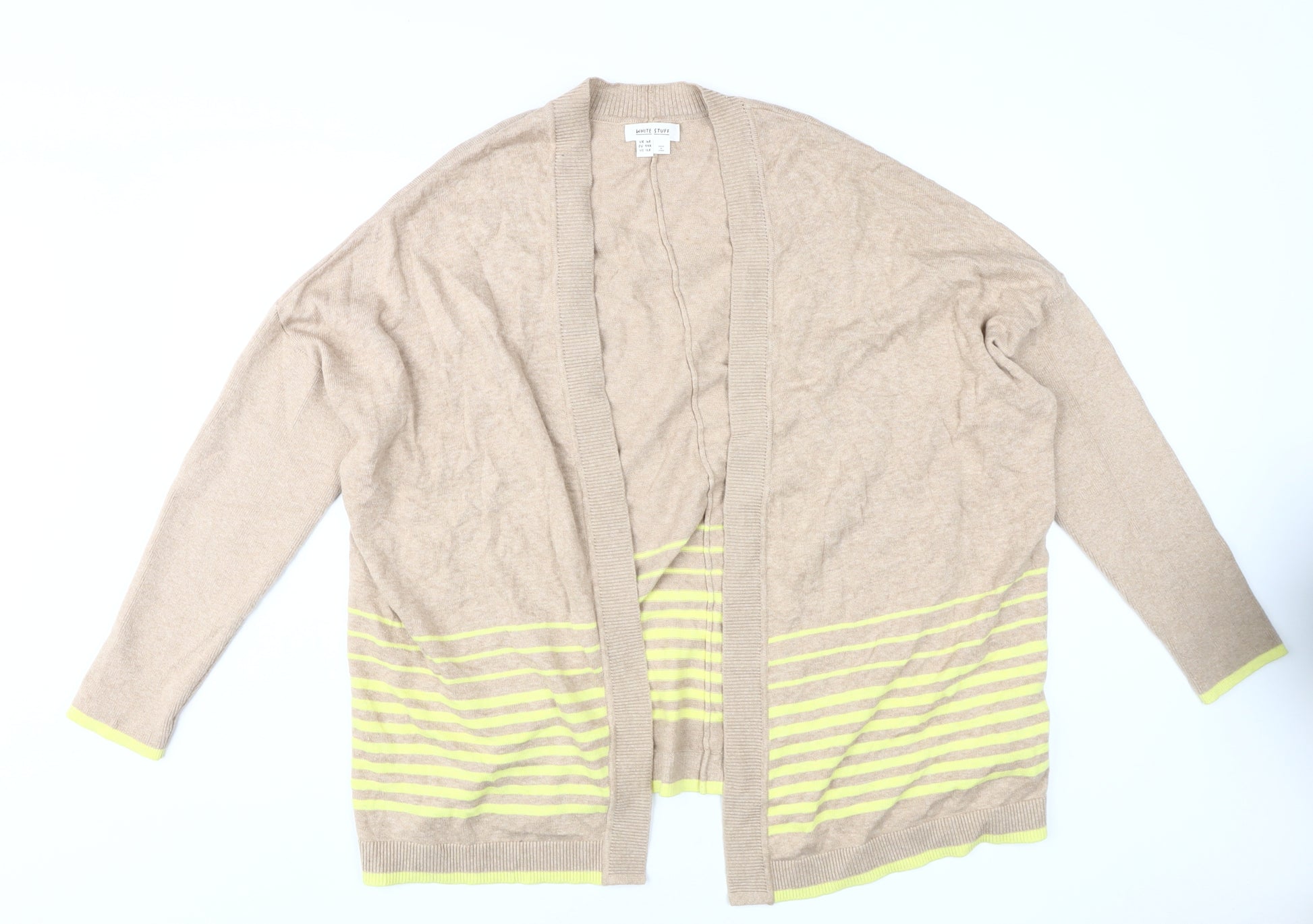 Discover effortless style with the White Stuff Women's Beige Striped Cardigan in size 16. Perfectly blending comfort with fashion, this cardigan features a regular fit and a flattering V-neckline. The long sleeves and tight-knit fabric ensure warmth and elegance throughout all seasons, making it an essential addition to your casual wardrobe. The neutral beige colour, accented with a subtle striped pattern, adds a touch of sophistication that pairs well with any ensemble. Made from a blend of 87% cotton and 13% linen, the cardigan offers breathability and comfort with every wear. Though designed with a focus on simplicity, the cardigan warrants versatility, whether you're layering it over a casual tee or dressing it up for an evening out. Ideal for those who appreciate quality and timeless fashion, this White Stuff cardigan is also easy to care for with its hand wash requirement, ensuring longevity and continued appeal. Embrace the understated elegance and make it a staple piece in your collection. Act now to own this quality piece at an attractive price.