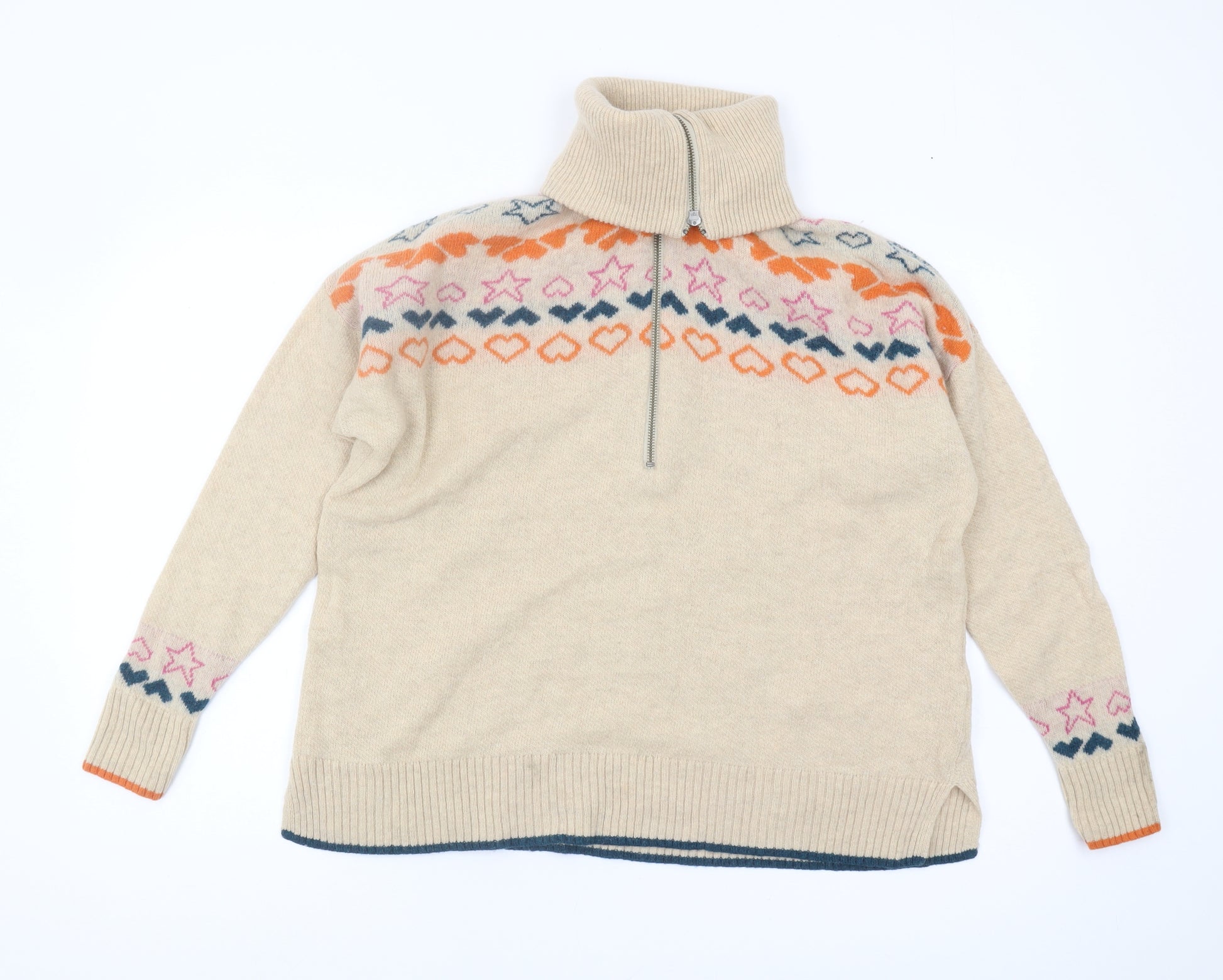 Women's Beige Wool Roll Neck Knit Jumper UK 12