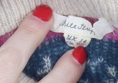 Stay stylish and warm with this White Stuff Women's Beige Wool Roll Neck Knit Jumper in size UK 12. Perfectly designed for the winter months, this jumper combines comfort and elegance with a classic Fair Isle pattern. Made from a high-quality blend of 80% wool and 20% nylon, it offers both durability and a cozy feel. The roll neck and full zip accent add a touch of sophistication, making it ideal for casual outings or evenings by the fireplace. This regular-fit jumper features long sleeves and a chic beige colour, effortlessly complementing any wardrobe. With its machine washable fabric, maintenance is a breeze. Whether you're heading out for a casual day or gathering, this timeless piece ensures you do so in comfort and style.