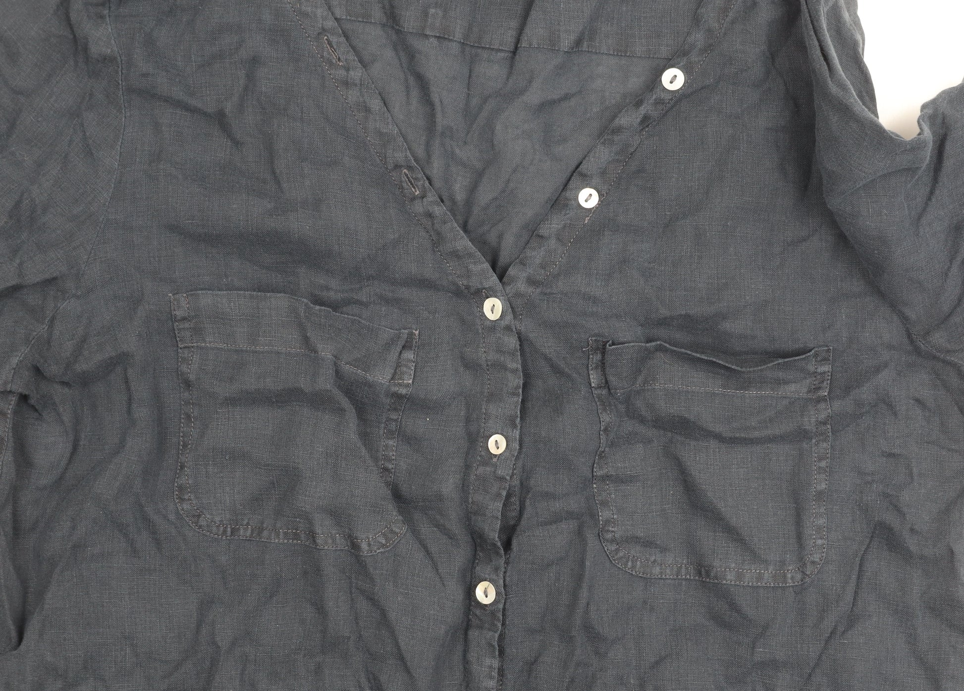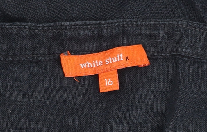 Elevate your casual wardrobe with this stylish White Stuff button-up shirt, designed perfectly for women who appreciate comfort and style. Rendered in a versatile black hue, this piece features a charming V-neckline and short roll-tab sleeves that provide a relaxed yet flattering fit. Crafted from 100% cotton and made with a woven fabric type, it promises a soft feel and breathability ideal for summer wear. Its solid pattern, coupled with button accents, adds a touch of elegance suitable for a variety of occasions ranging from casual outings to informal gatherings. The regular fit ensures it's flattering for an everyday silhouette, offering both style and ease of movement. This shirt also benefits from easy-care machine washability, making it a practical addition to any wardrobe. Despite showing signs of wear with a slightly wrinkled fabric, its overall condition remains excellent, marking this piece as a fabulous and affordable addition to your collection. Get ready to fall in love with its effortless style and modern charm. Perfect for pairing with jeans or a skirt for a casual day out, this White Stuff shirt is a must-have staple.