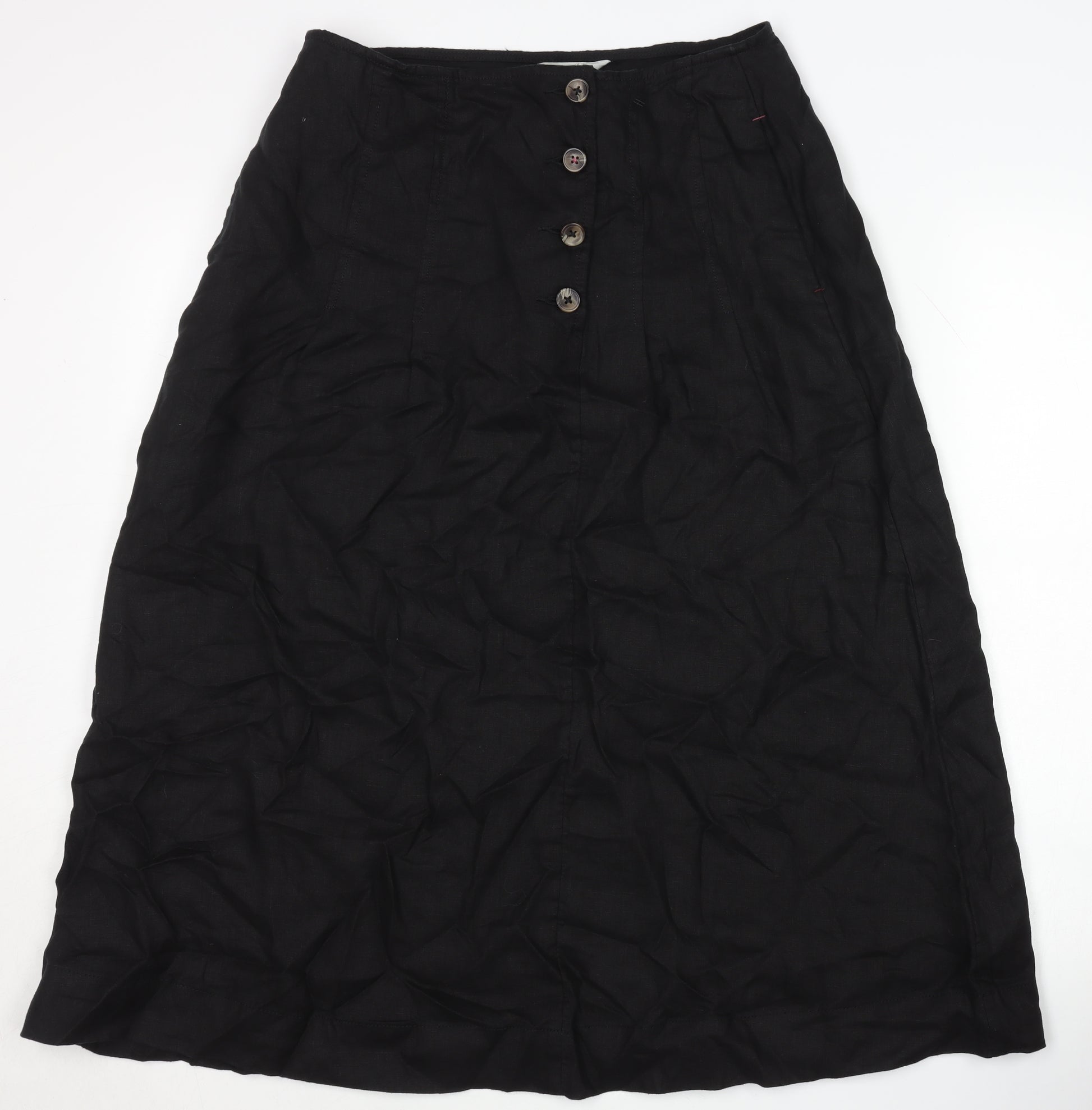 Step into elegance with the White Stuff black midi skirt, tailor-made for women seeking both style and comfort. This 100% linen skirt boasts a mid-rise fit and is perfect for summer occasions. With its button accents and practical casual design, it pairs effortlessly with any top, making it a versatile addition to your wardrobe. Whether you're off to a casual day out or a relaxed dinner, this solid black piece ensures you embody understated elegance. Its ease of care with being machine washable further enhances its allure for the modern woman.