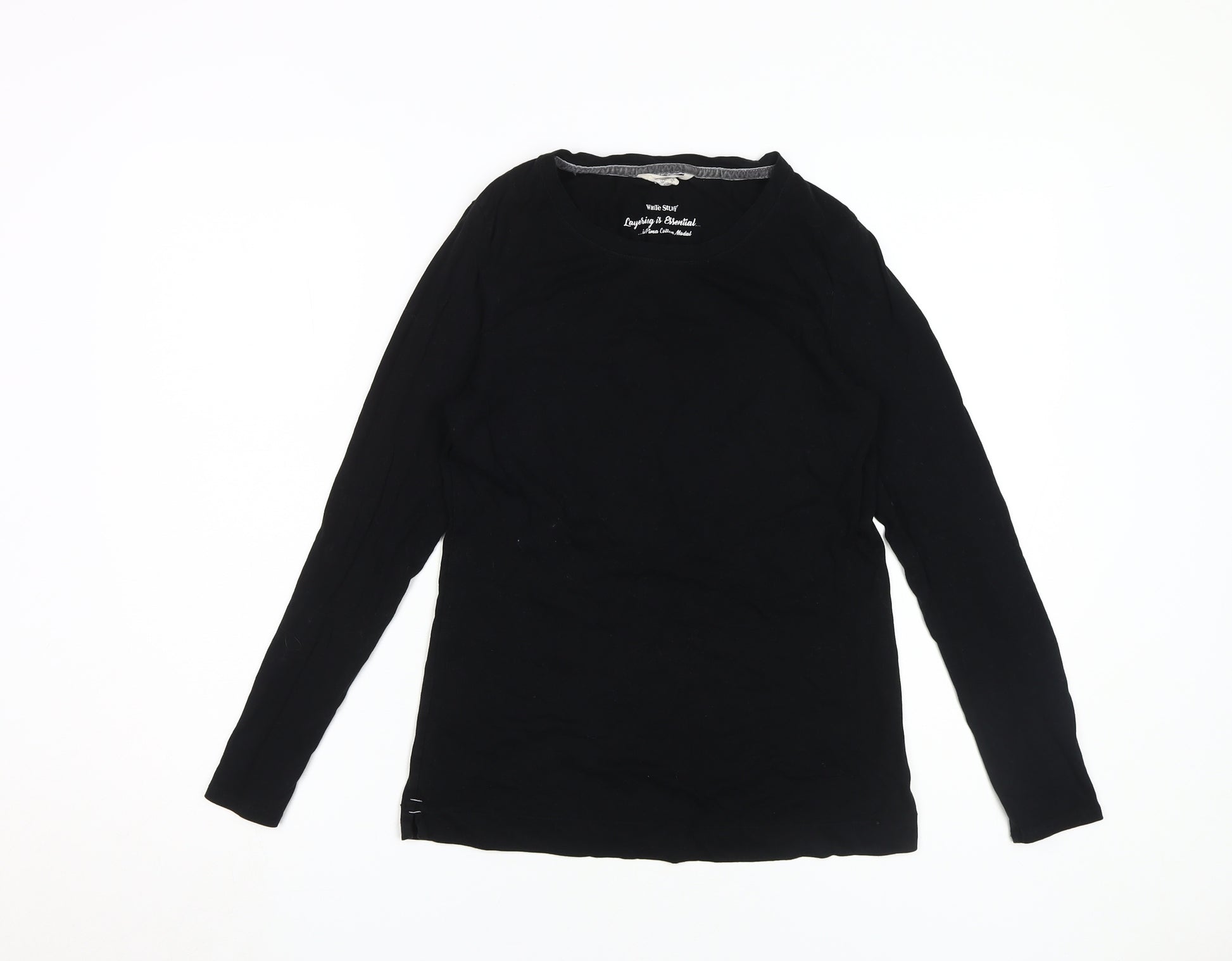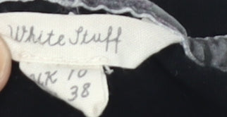 Elevate your wardrobe essentials with this versatile black top from White Stuff, perfect for everyday casual style. Crafted for comfort and fashion, this top features a classic round neckline and long sleeves, offering a timeless, solid design suitable for various occasions. This top is made from a balanced blend of cotton and modal, ensuring a soft, breathable feel against your skin without compromising style or durability. With its regular fit, this top accommodates a variety of body types, making it a staple piece in any woman’s collection. Whether you're heading to work, out for a casual day, or just relaxing at home, this top pairs effortlessly with denim, skirts, or smart trousers. Its machine washable fabric makes it easy to care for, saving you time and effort. Despite being pre-owned, the top is in excellent condition, reflecting its quality and minimal signs of wear. At an attractive price, this black long sleeve top by White Stuff is both stylish and economical, providing you with a chic, reliable choice throughout the seasons.