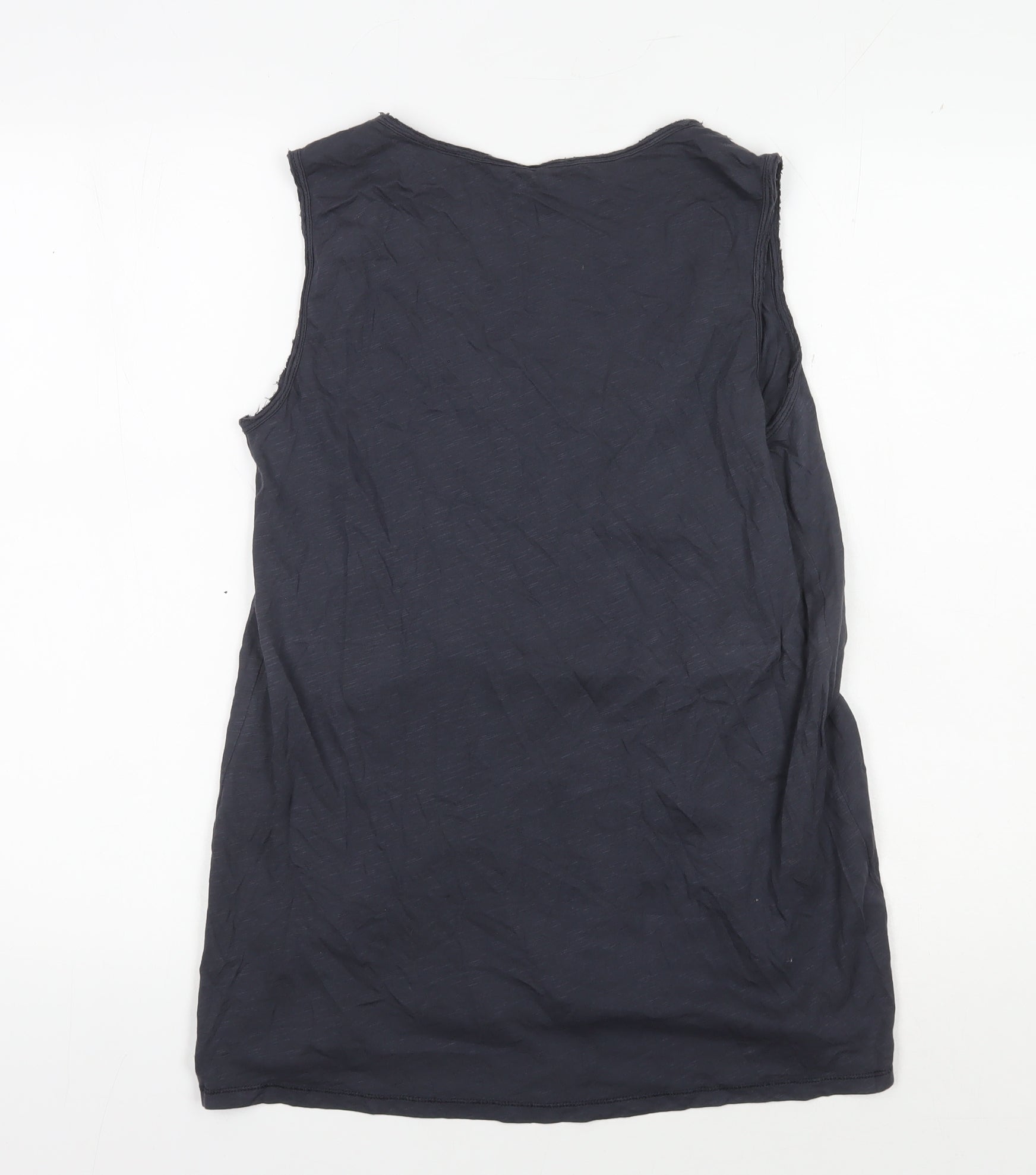 Elevate your casual wardrobe with this versatile tank top from White Stuff. Crafted from 100% cotton, this top offers a soft and breathable feel, perfect for everyday comfort. The solid black colour adds a touch of sophistication, making it a versatile piece for various ensembles. Designed for women, this tank features a classic scoop neckline and a casual fit that flatters your silhouette without clinging uncomfortably. The sleeveless design makes it ideal for layering or wearing alone during warmer days. Despite minor wrinkles, the top is in very good condition, enhancing its casual appeal while retaining a touch of elegance. This piece stands out with its simplistic yet chic style, making it a staple for any wardrobe. Whether you're running errands or meeting friends for a brunch, this tank seamlessly adapts to any casual occasion. Its regular size 14 fit ensures a comfortable feel, while the pullover style and jersey fabric provide ease of wear and a relaxed fit. Perfect with jeans for an effortless, classic look. Priced reasonably at £7.50, this is an excellent addition to your wardrobe, offering both quality and style.