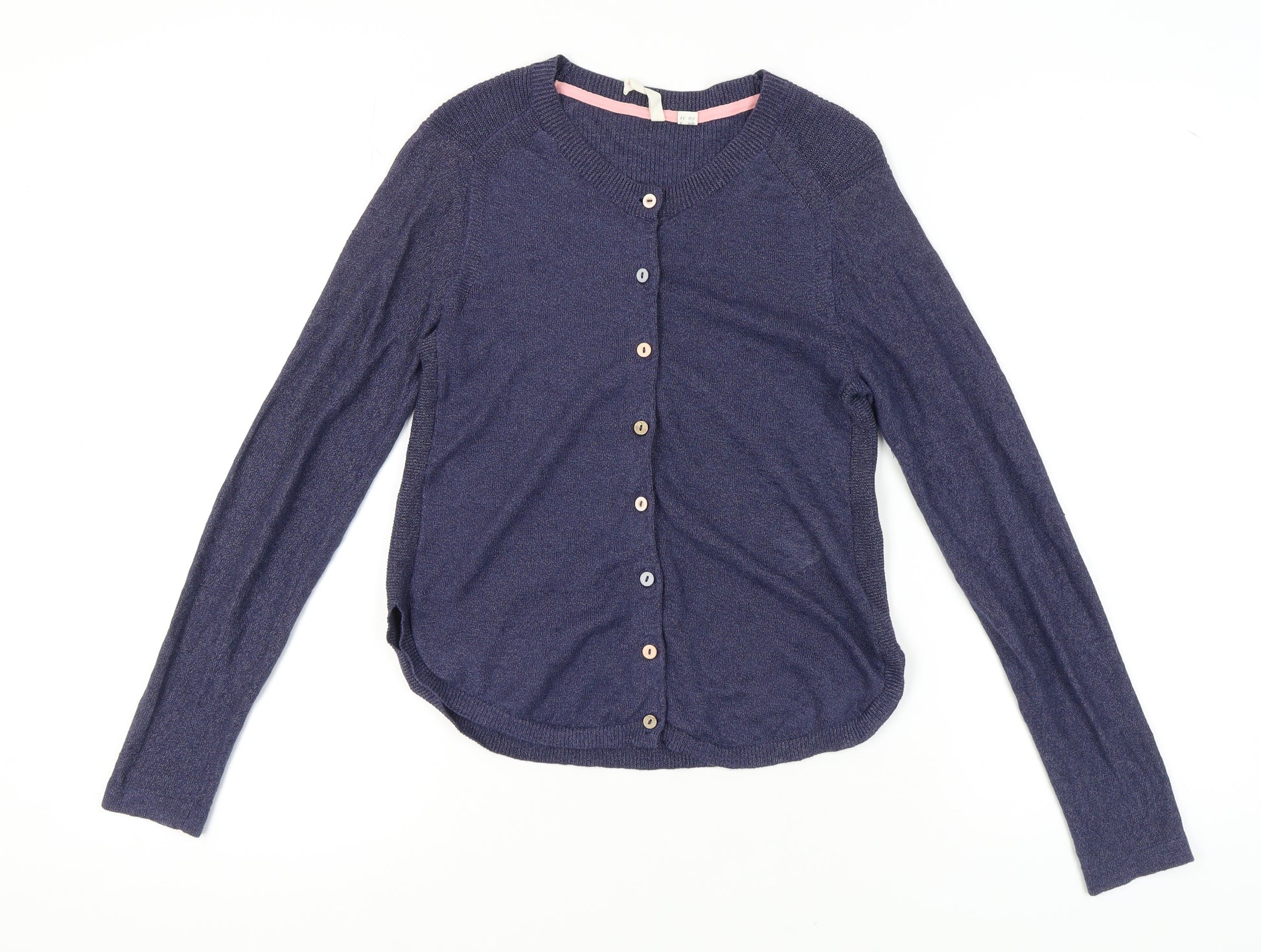 Introducing a classic addition to your casual wardrobe, this White Stuff women's cardigan offers both style and comfort. Crafted in a lovely shade of blue, this cardigan is ideal for the fashion-forward woman. Designed in a regular fit, it ensures a comfortable wear for daily use. Its lightweight and tight-knit fabric make it ideal for spring and summer outings.The cardigan features a round neck and long raglan sleeves, providing a relaxed yet elegant appearance. Its button accents add a touch of sophistication to this simple yet stylish piece. Made from a quality blend of 61% linen, 27% cotton, and 12% polyester, it promises breathability and durability.Perfect for casual occasions, this cardigan is machine washable, ensuring easy maintenance. With its simplistic design, it can be effortlessly paired with various outfits, from jeans to skirts, making it a versatile addition to your collection.In excellent condition, this cardigan has no visible signs of wear or damage, promising you a sharp look with each wear. Whether you're heading to a casual gathering or simply enjoying a day out, this cardigan from White Stuff is set to become your favourite go-to garment.
