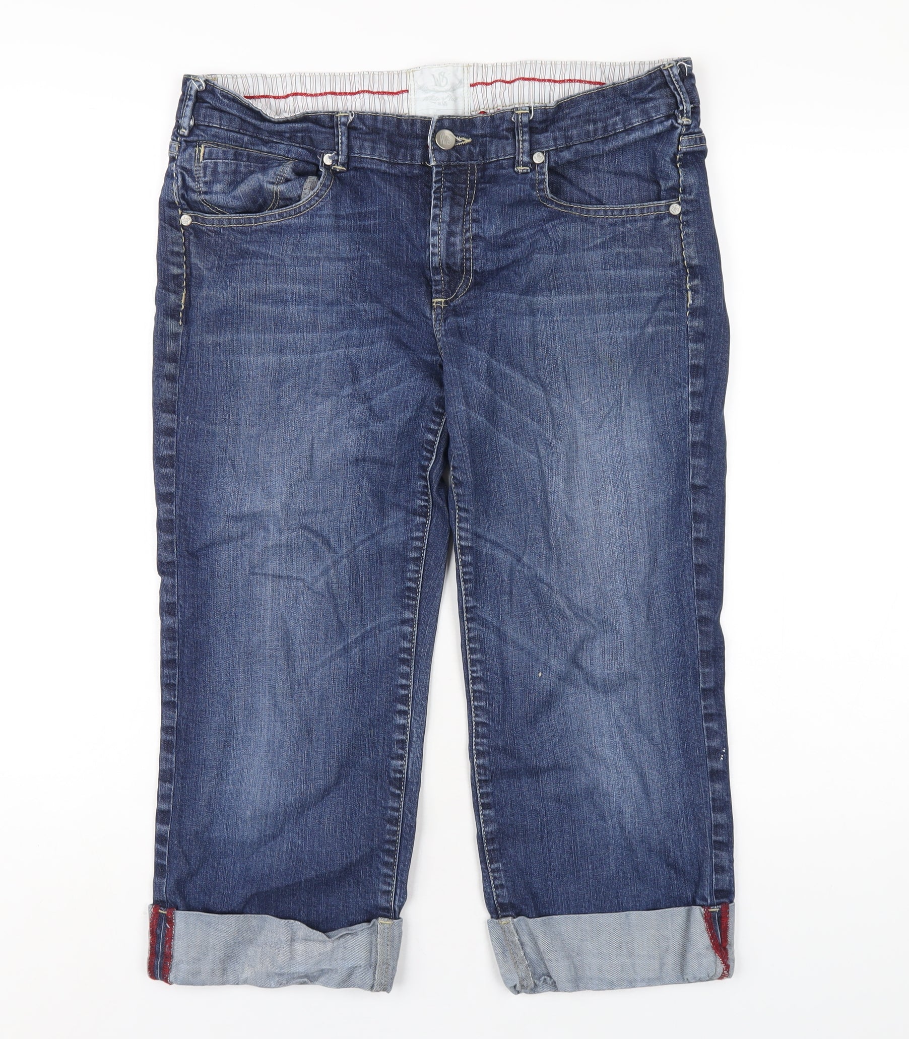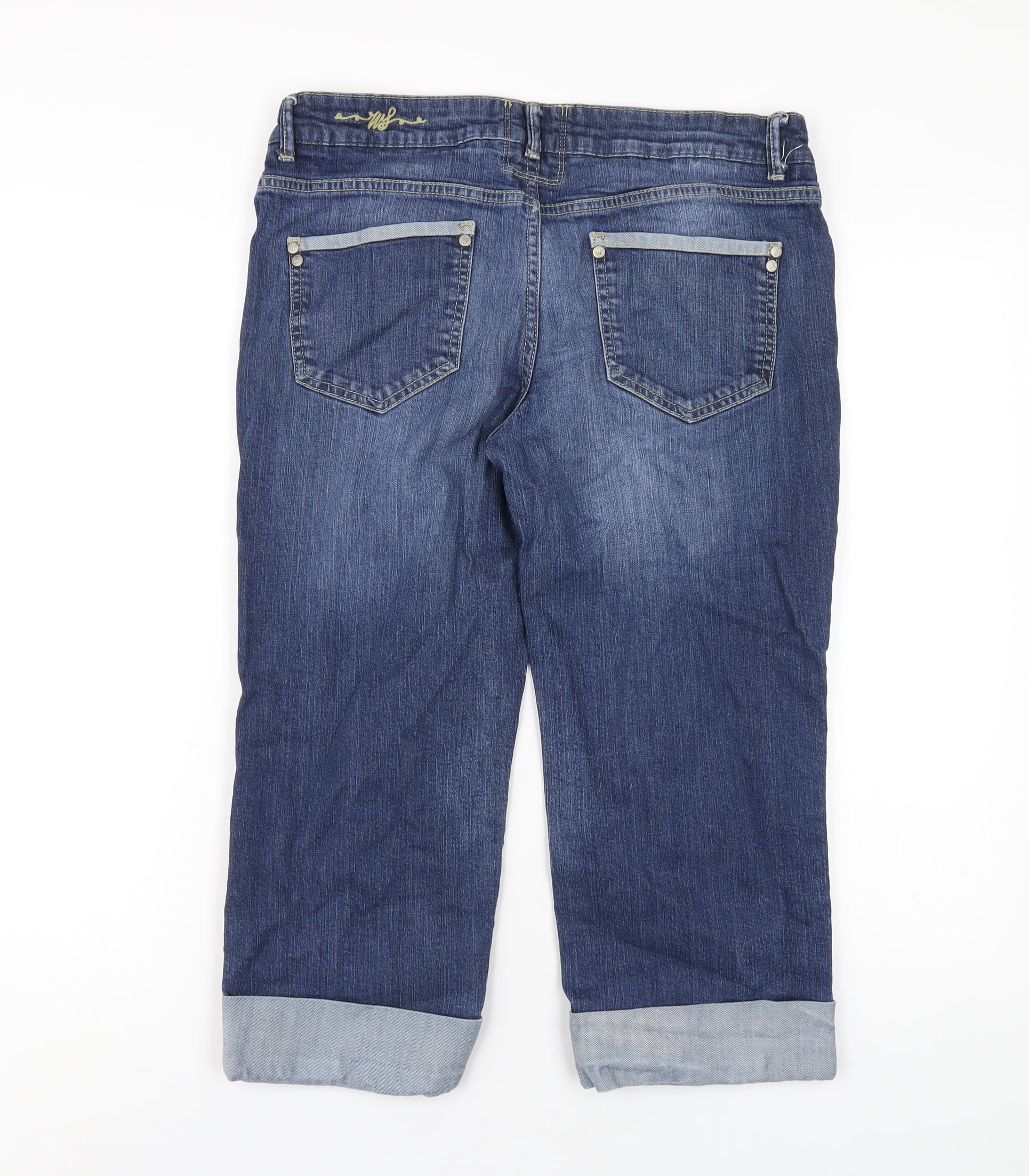 Womens Blue Cotton Capri Jeans Size 12 L21 in Regular Zip