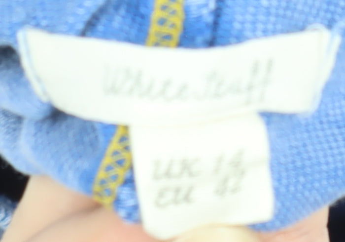 Add a touch of relaxed charm to your casual wardrobe with this White Stuff women's blue floral sweatshirt. Crafted from 100% soft cotton, this lightweight pullover provides breathable comfort for everyday wear, ideal for transitional seasons like spring and autumn. The rich sky-blue base decorated with navy floral prints gives it a cheerful yet elegant look, making it perfect for pairing with jeans, leggings, or casual skirts. The crew neckline and long raglan sleeves ensure all-day comfort with ease of movement. Designed in a relaxed fit, it drapes beautifully, giving an effortlessly chic silhouette while maintaining a cosy, natural feel. The garment’s simple pullover closure and ribbed cuffs add subtle structure to its easy-wearing aesthetic. Made from high-quality cotton, it offers durability and an easy-care washing experience. Whether for relaxed weekends, coffee outings, or at-home comfort, this sweatshirt embodies the well-loved White Stuff blend of playful design and everyday practicality. In excellent pre-owned condition, it shows only minimal signs of previous wear and no visible flaws. Perfect for women who love a touch of floral inspiration in their loungewear or casual ensembles, this sweatshirt makes a versatile addition to any collection. Enjoy the perfect balance of timeless comfort and contemporary British casualwear with this beautifully patterned White Stuff pullover, designed to add warmth, style, and charm to your look.