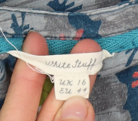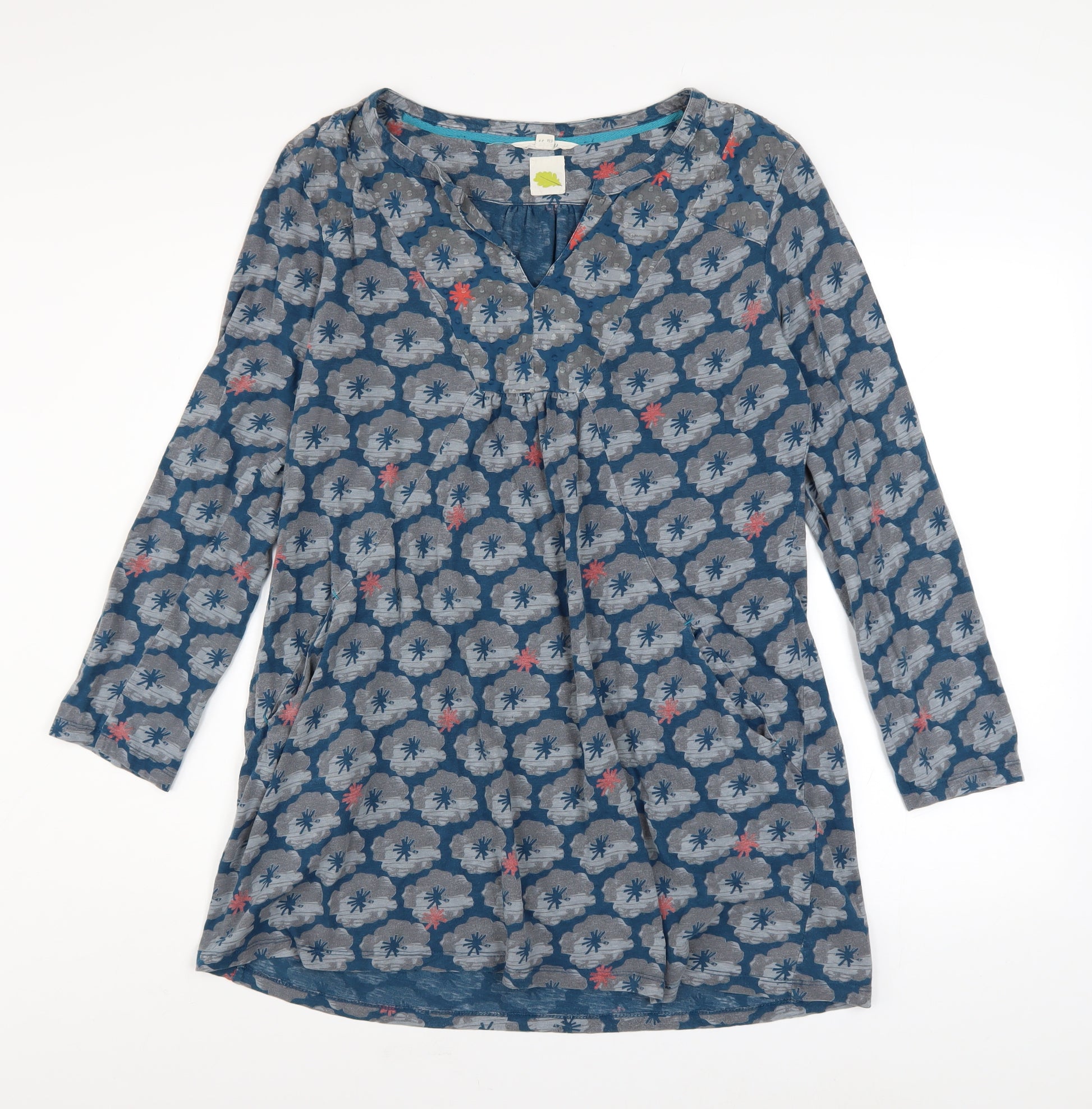 Elevate your casual wardrobe with this charming White Stuff women's blue floral tunic top, perfect for easy everyday wear. Crafted from soft 100% cotton, the fabric offers a lightweight and breathable feel, ensuring all-day comfort. The relaxed regular fit combines with a flattering V-neckline, creating a silhouette that’s both feminine and laid-back. The long sleeves provide gentle coverage, making it an ideal choice for spring and summer transitions, while the floral pattern in tonal shades of blue with subtle pops of colour adds a refreshing, bohemian-inspired touch.This tunic-style blouse is designed for versatility—it pairs beautifully with jeans or leggings for relaxed outings or workplaces with a smart-casual vibe. The pullover closure makes it simple to wear, while the durable jersey fabric offers a comfortable stretch and easy care. As part of White Stuff’s renowned focus on timeless design and quality craftsmanship, this top reflects understated elegance with a touch of individuality.In excellent condition with gentle previous wear, the material retains its shape and colour vibrancy. Practical and stylish, this piece is perfect for those who enjoy effortless style with comfort. Wear it on breezy spring days or warm summer evenings—easy to layer under a cardigan or jacket when temperatures cool. Its versatile blue palette complements a variety of outfits and skin tones, making it a dependable wardrobe favourite.Machine washable for convenience, this White Stuff tunic blouse makes an excellent choice for women who appreciate quality, comfort, and casual style with a touch of charm. Whether headed for brunch with friends, a day out shopping, or relaxed weekends away, this top will become your go-to favourite—an easy, polished look with subtle elegance.